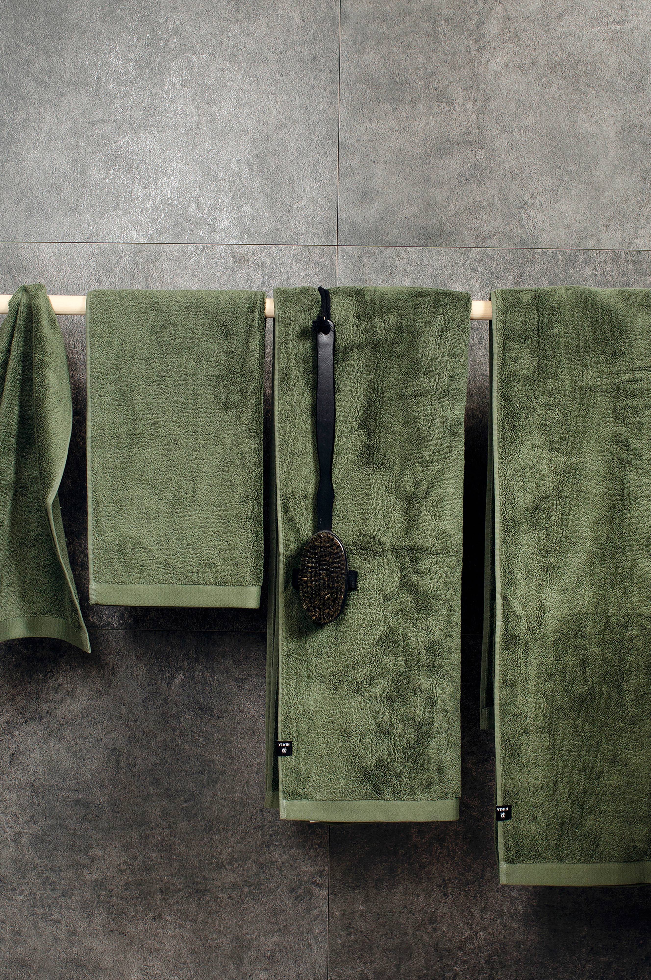 Så god kvalitet. Bløde, behagelige og absorberer godt. Flot grøn farve, der matcher bademåtten.