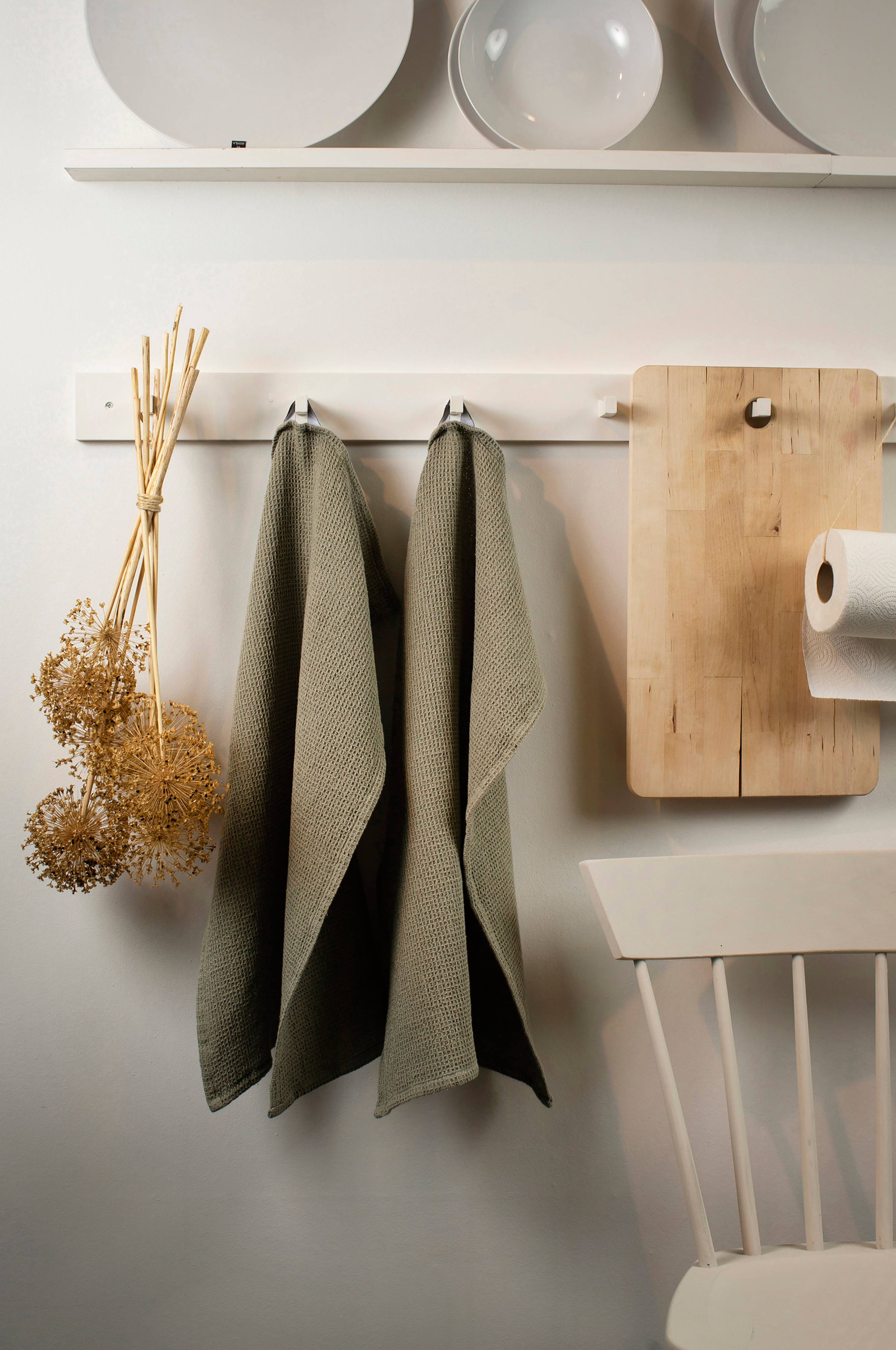 Hetty Køkkenhåndklæde med luksuriøs vaffelstruktur i 30 % hør og 70 % bomuld. Håndklædet er forvasket, hvilket giver det en blød fornemmelse. Fremragende sugeevne og tørrer hurtigt. Pakke med 2 håndklæder. Maskinvask 60°C, krympning 5-7%.