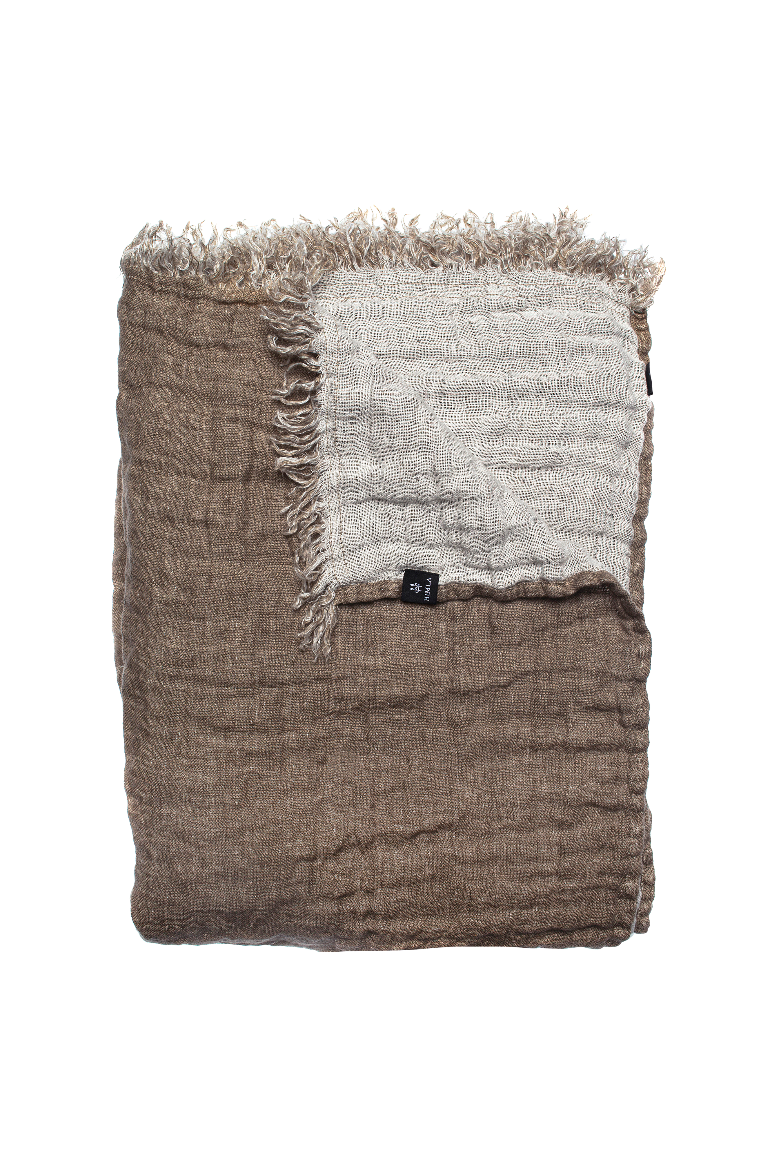 Hannelin er et tæppe i dobbeltvævet hør, der er vasket for at få et krøllet look. Plaiden er kantet langs de lange sider og har frynser på de korte sider. Maskinvask 40°C skåneprogram, tørretumbling ved lav varme, vaskes separat. Kan krympe 1-2%.