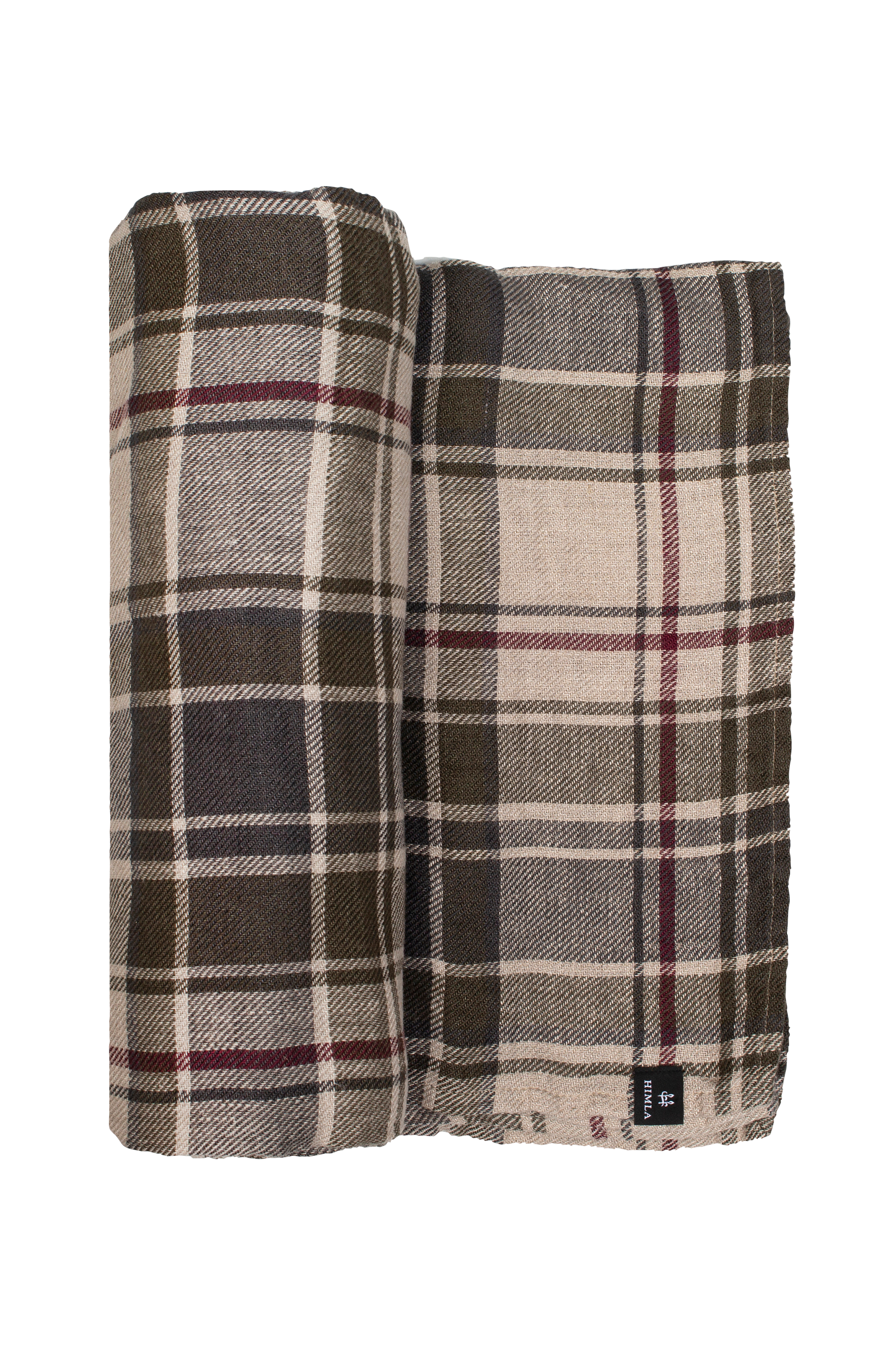 Högfjället er en plaid af hørlærred i twillstruktur med storternet mønster i farver som på en naturlig måde matcher julens røde nuancer.