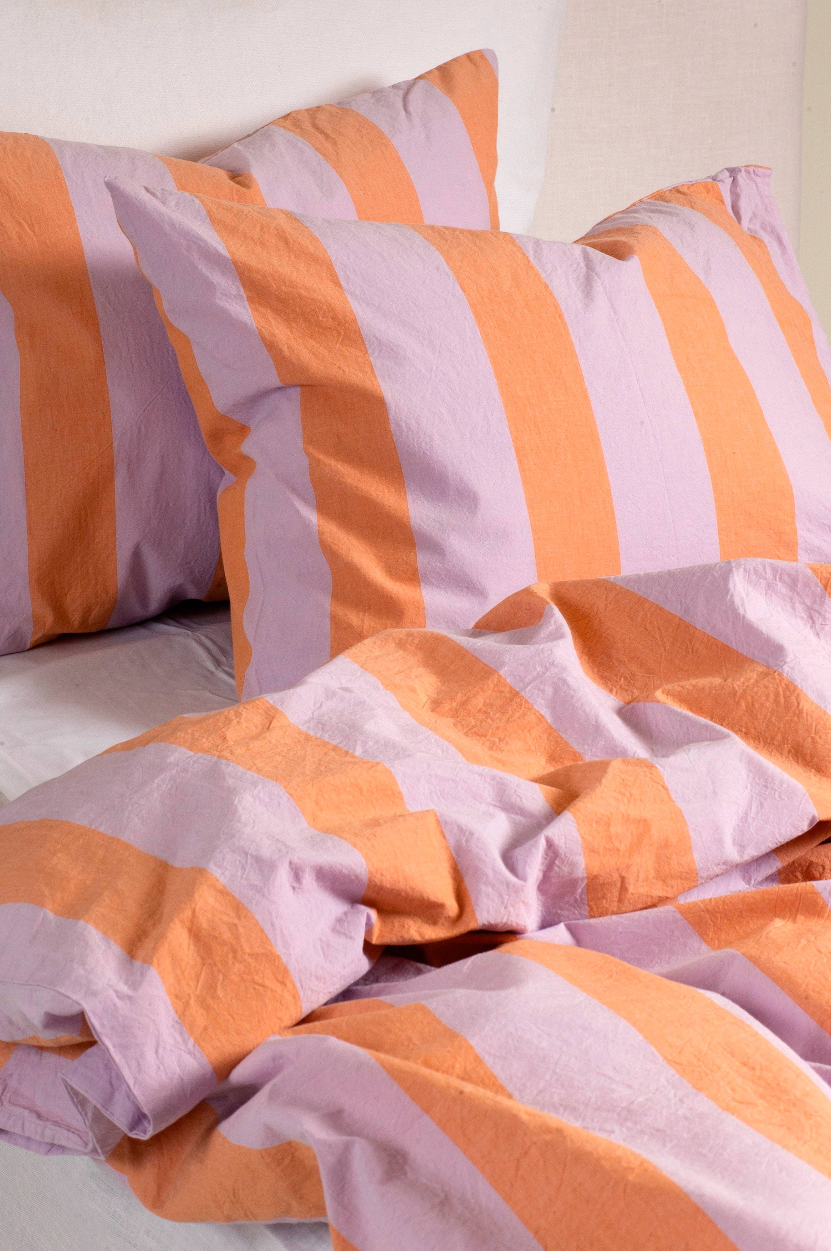 Daydreamer er Himlas blokstribede sengelinnedserie i sprød og kølig percale. Fremstillet af kæmmet bomuld med en trådtæthed på 200 Tc og vasket efter syning. Pudebetræk med flapåbning på bagsiden. Produktet er certificeret med Oeko-Tex. Maskinvask 60°C, krympning 1-3%.