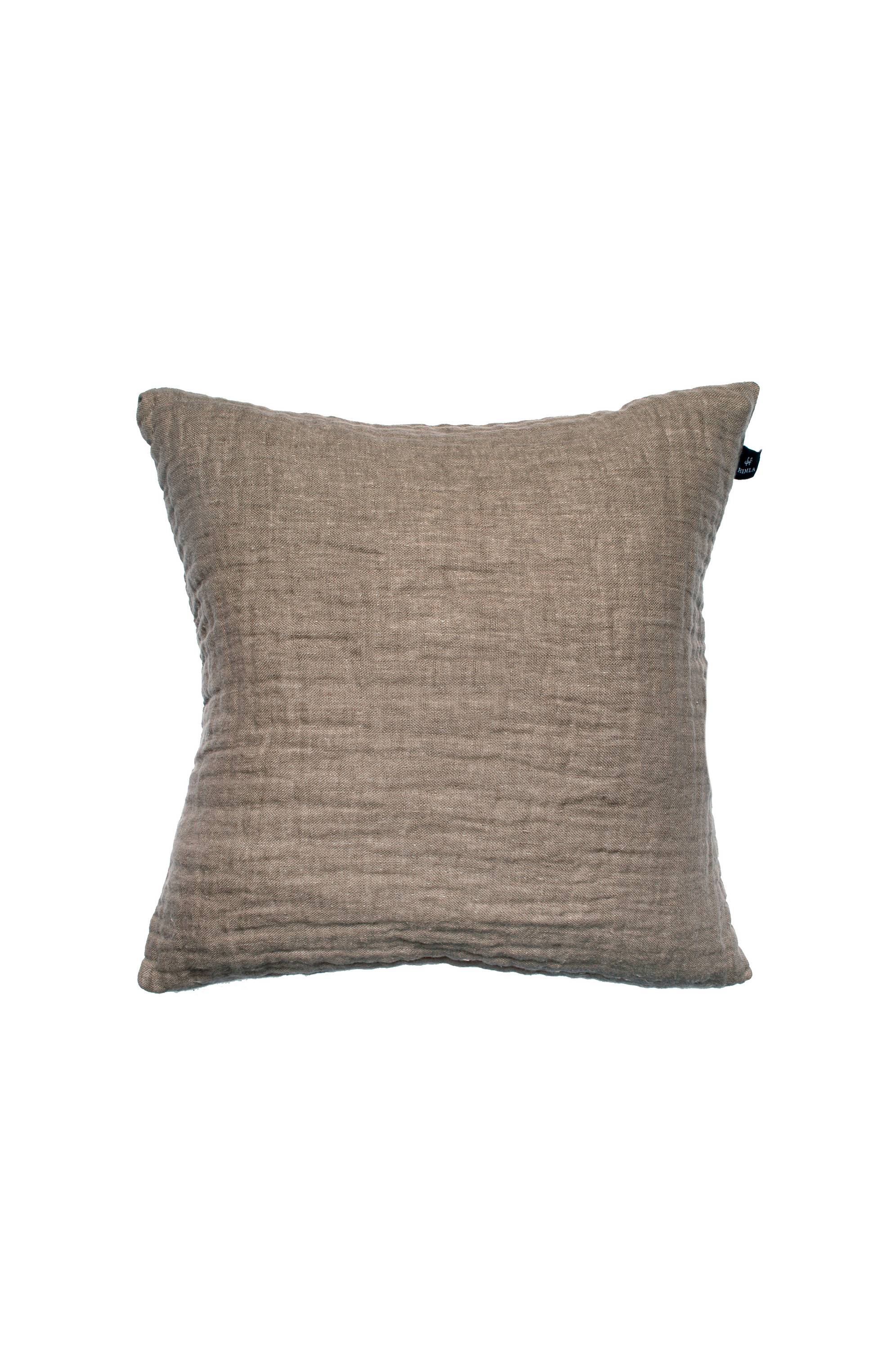 Hannelin er et dobbeltvævet linned, der er vasket, så det får et markant krøllet look. Puden har en overlappende åbning på bagsiden. Maskinvask 40°C skåneprogram, tørretumbling ved lav varme, vaskes separat. Kan krympe 1-2%.