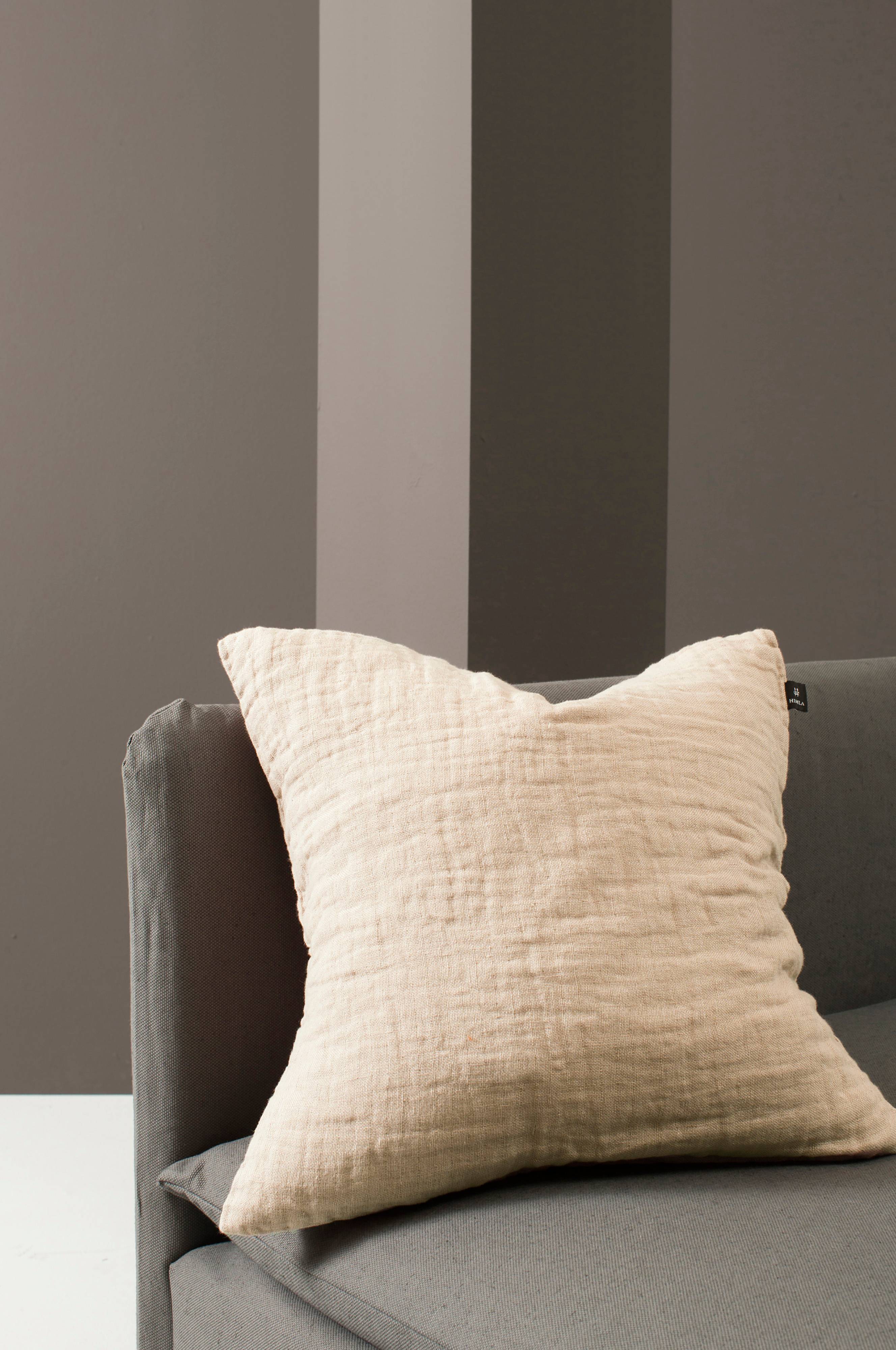 Hannelin er et dobbeltvævet linned, der er vasket, så det får et markant krøllet look. Puden har en overlappende åbning på bagsiden. Maskinvask 40°C skåneprogram, tørretumbling ved lav varme, vaskes separat. Kan krympe 1-2%.