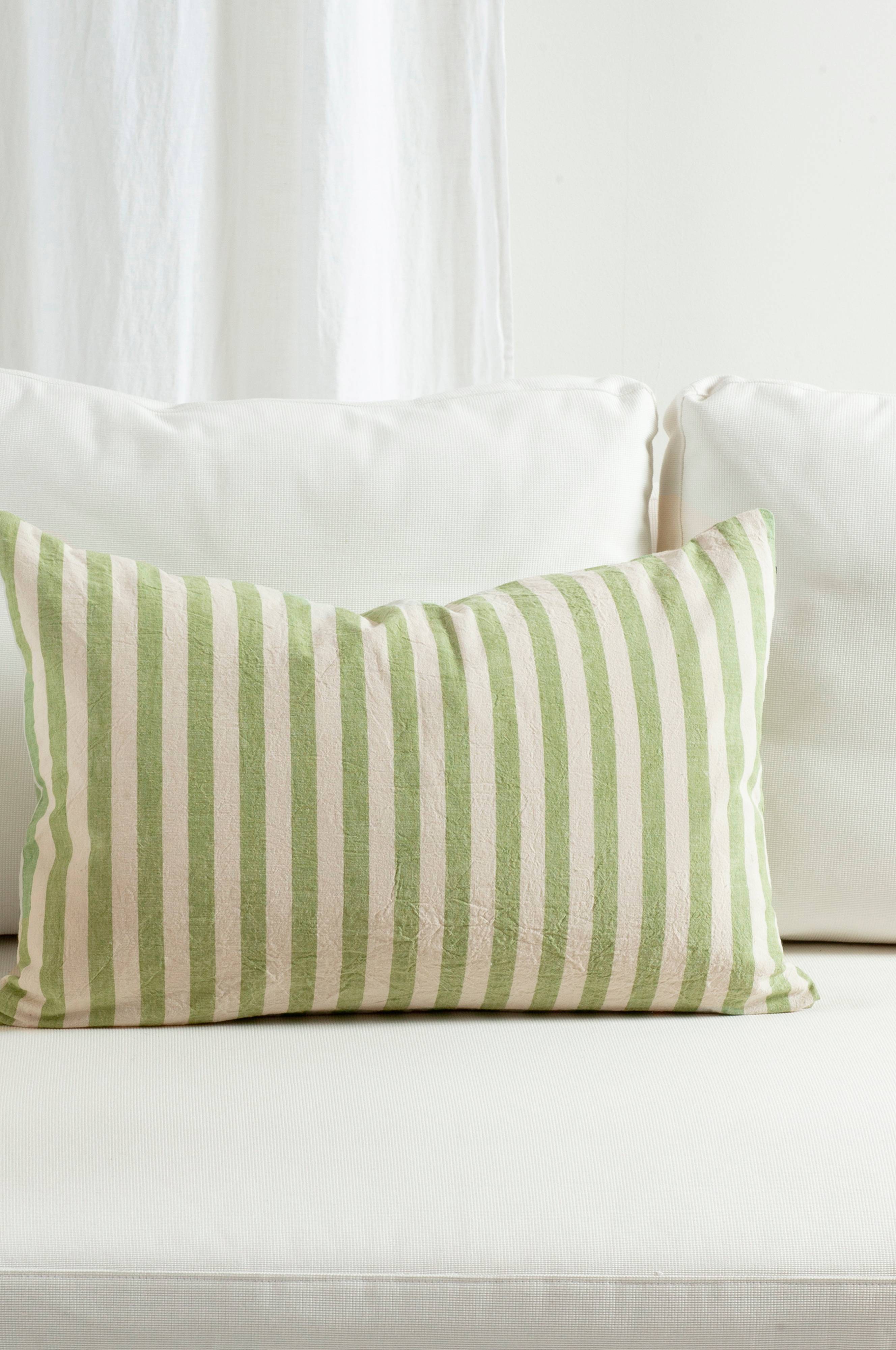 Riviera er en kollektion i halvlinned med klare striber i sommerlige farver. Pudebetrækket er vasket efter syning, hvilket giver et afslappet udtryk og en blød fornemmelse. Lukning med skjult lynlås i bunden. Riviera er nem at pleje: Efter vask skal den tørretumbles let ved lav temperatur, og rynkerne skal bevares for at give en livlig fornemmelse. Puden sælges separat. Maskinvask 60°C, krympning 3-5%.