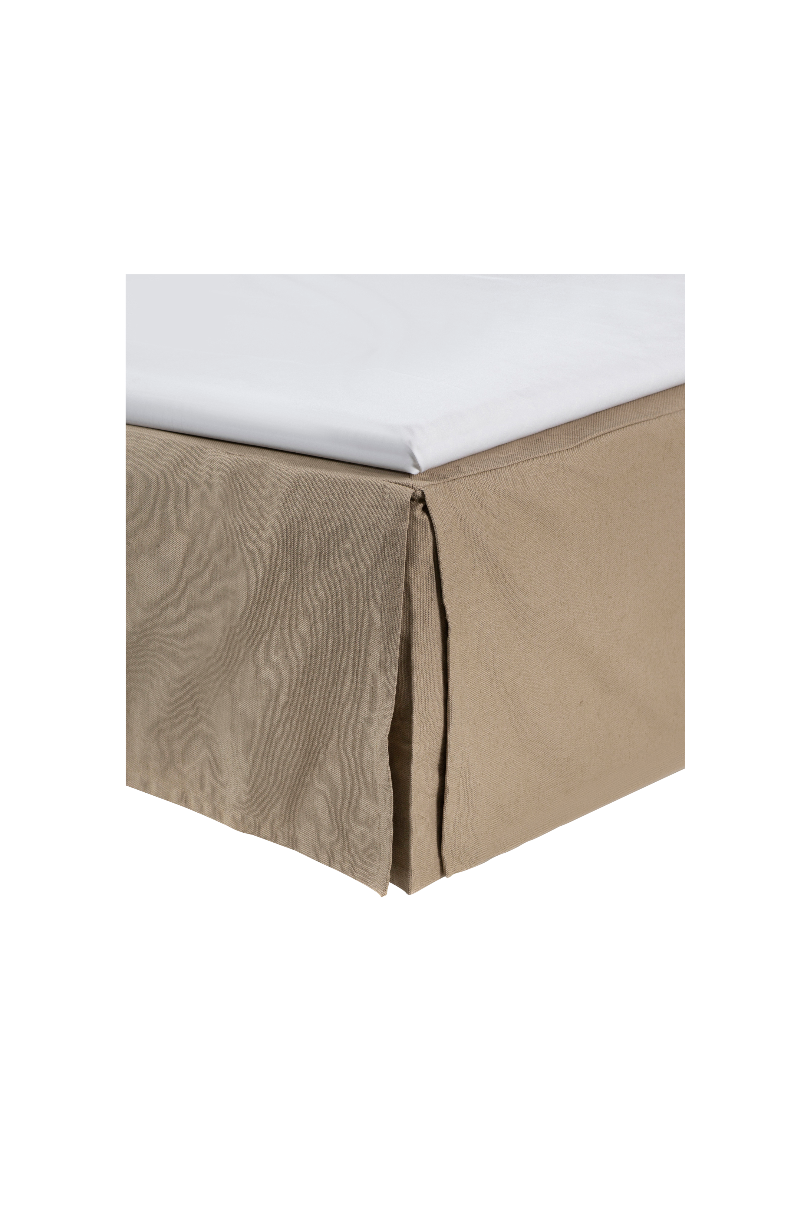 Weeknight Sengekjolen er lavet i en lidt tungere kanvas i halvlinned og med enkle syninger for et rent, tidløst look. Sengenederdelen fås i fire bredder, fra 90 cm til 180 cm, og selve nederdelen fås i to højder, 42 cm og 52 cm. Farverne er hvid og ask. Plej dit sengenederdel ved at lufte det udenfor, når det er nødvendigt. Små pletter kan behandles med varmt vand og pletfjerningsmiddel til tekstiler, alternativt opvaskemiddel eller vaskemiddel. Brug kemisk rensning til hårdere pletter. Renseri