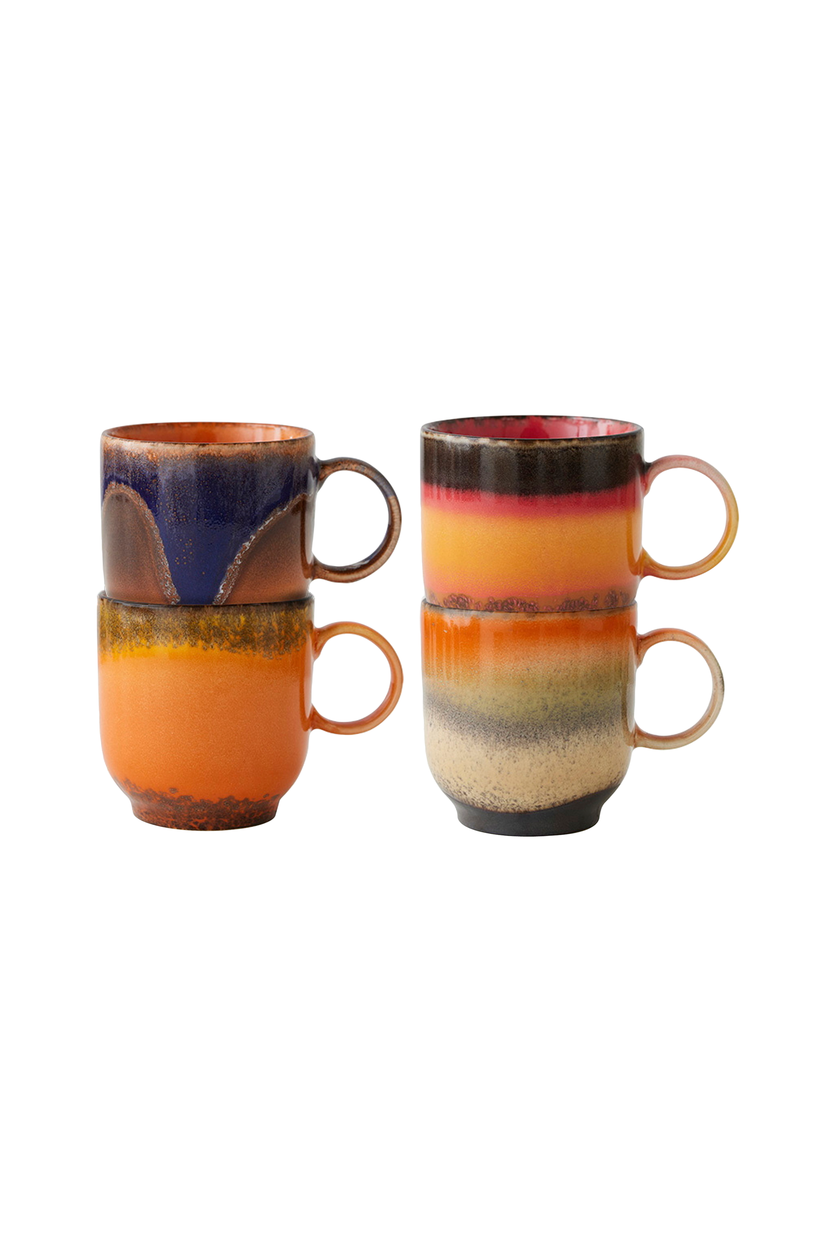 Gå tilbage i tiden med vores 70s Ceramics Coffee Collection, som er en levende hyldest til kaffekulturen. Hvert stykke i denne kollektion - fra de jordfarvede krus og underkopper til de finurlige sukker- og mælkekander og statement-kaffekander - er udformet med et nik til fortiden, men alligevel med moderne håndværk, der sikrer holdbarhed. Den rige, varme palet og de fede mønstre skaber en visuel fest, der inviterer dig til at nyde din kaffe i ægte vintagestil.