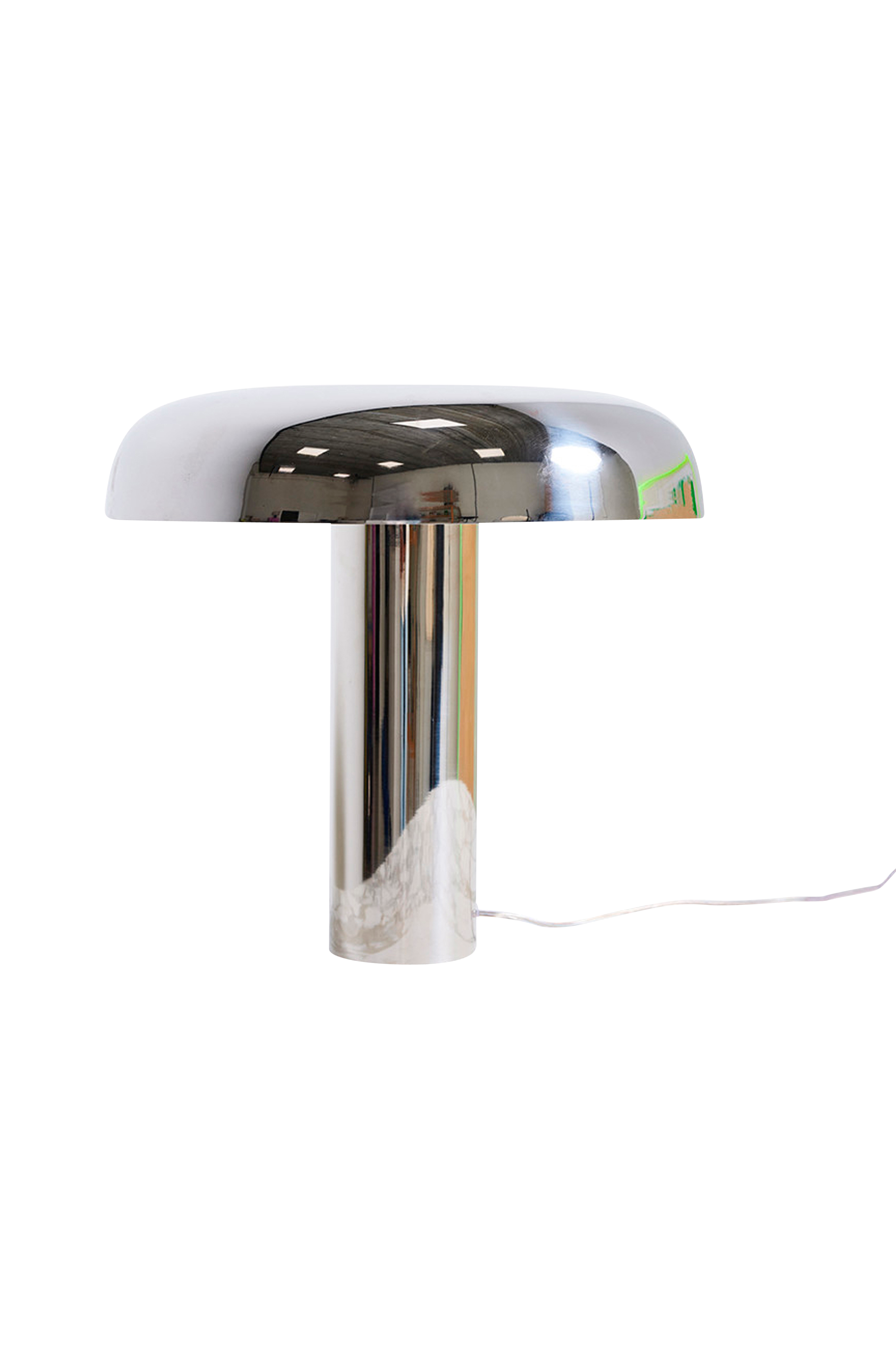 Bordlampe af stål med forkromet finish. Design i form af en svamp. Europæisk stik. Maks. 40W med E27-sokkel. Ledningslængde 190 cm.