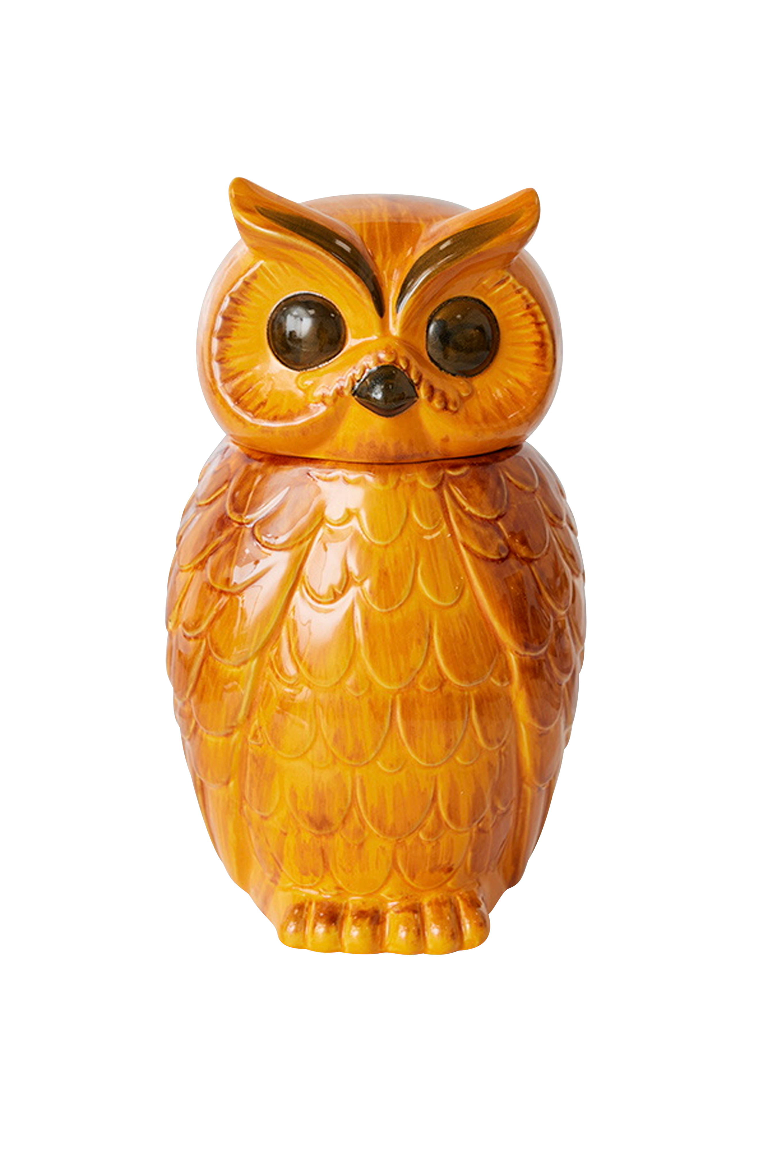 Vi præsenterer vores charmerende keramiske opbevaringskrukke, der er finurligt udformet som en klog ugle, et dejligt nik til retrodesign. Den er mere end bare en krukke, den er et udtryk for nostalgi, og den fås i en varm, solbeskinnet orange, der giver et strejf af glæde til ethvert rum, samt i en klassisk vintagebrun, der giver et mere subtilt, jordnært udtryk. Den detaljerede tekstur i uglens fjer, de legesyge, men stikkende øjne og det smarte design med et låg, der glider sømløst ind i den overordnede form, gør denne krukke både funktionel og dekorativ. Den er perfekt til opbevaring af dine yndlingsgodter, fra aromatiske kaffebønner til søde kiks, eller som skjulested for særlige skatte.