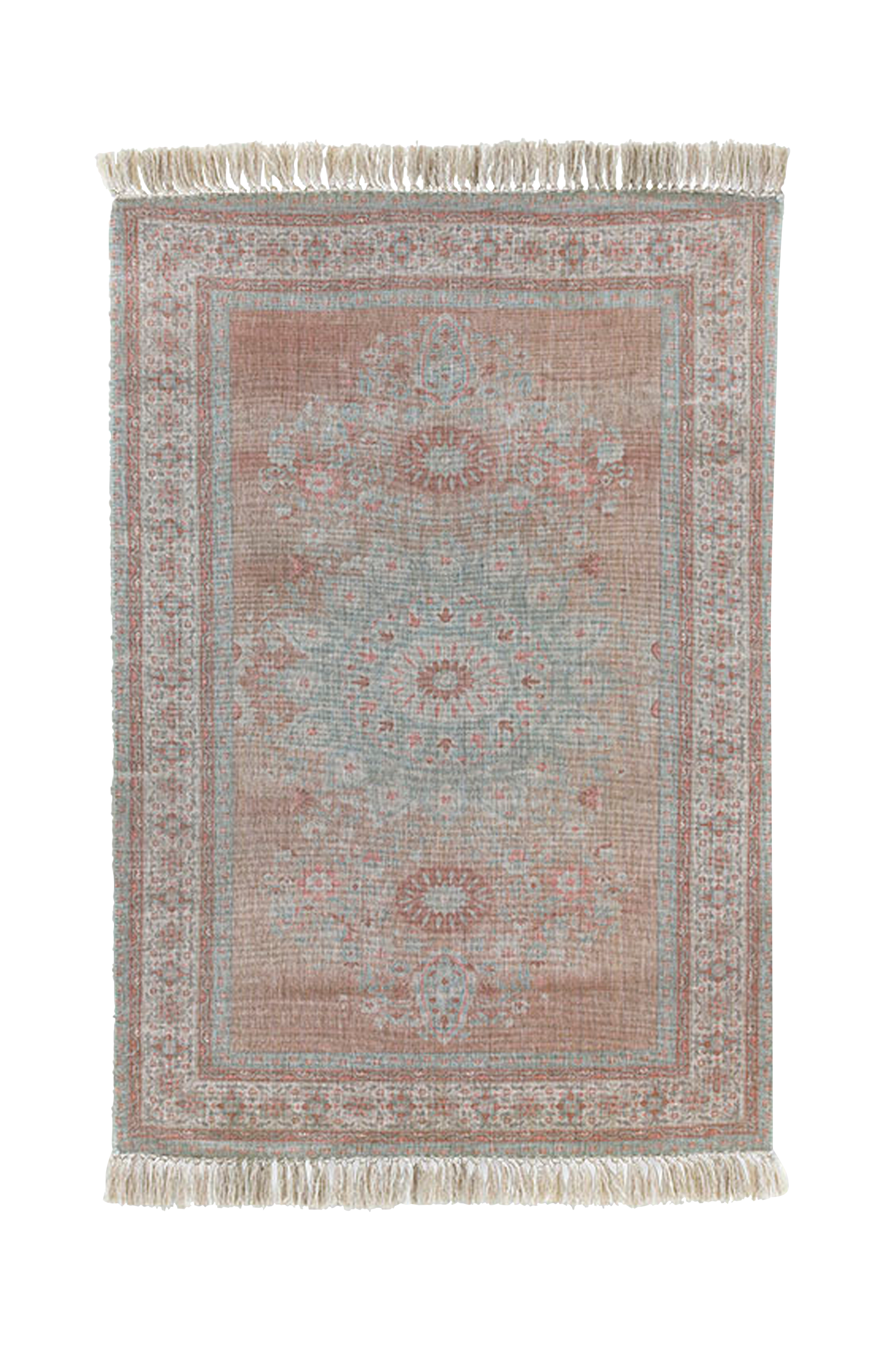 Mønstret tæppe som kan bruges indendørs eller udendørs. Mål 120x180 cm. Håndvævet og lavet af genindvundne PET-flasker. Højtryksrens. Tørres fladtliggende.