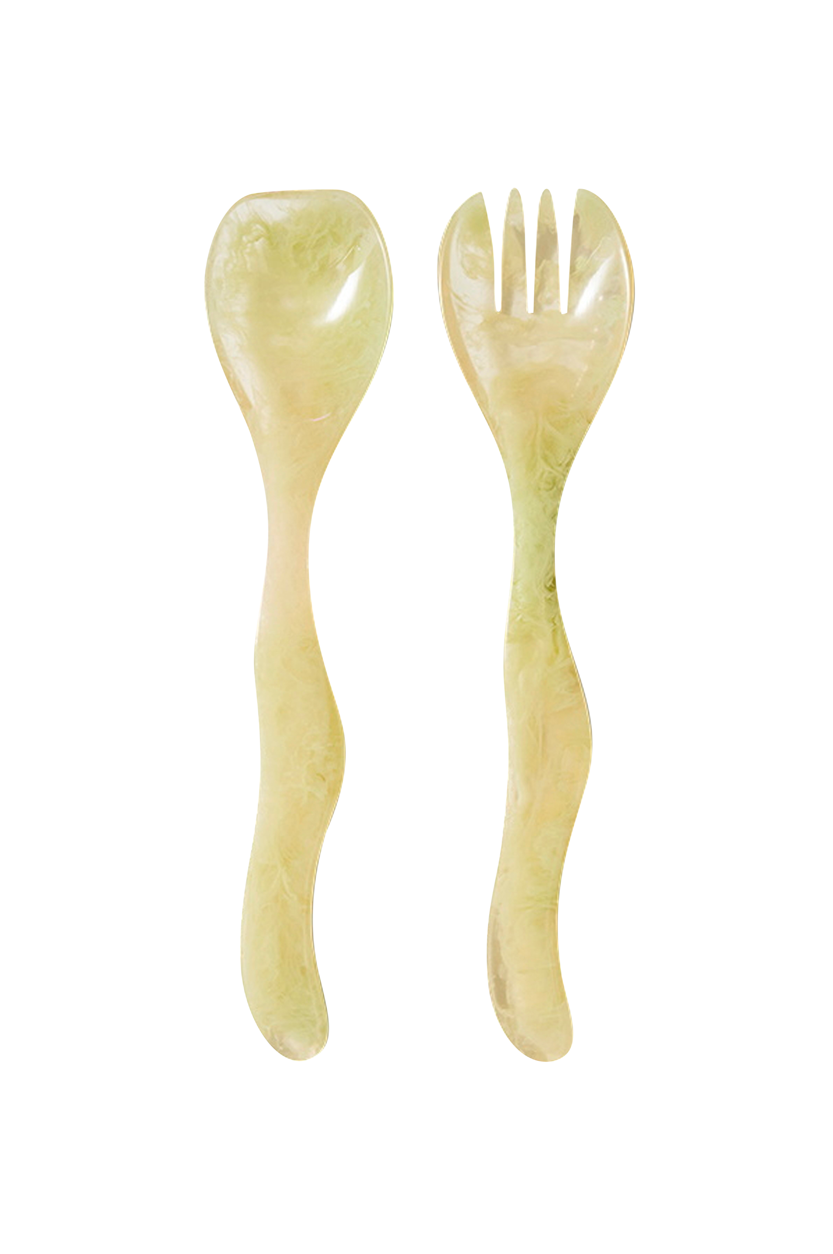 Dette sæt salatbestik kombinerer bløde toner med legesyge, skulpturelle former – designet til at bringe glæde til dit bord. De er lette, men iøjnefaldende og lige så funktionelle som dekorative. De er smukt pakket i en gaveæske og er den perfekte gave (til en ven eller dig selv). Materiale: Polyresin. Tåler opvaskemaskine.