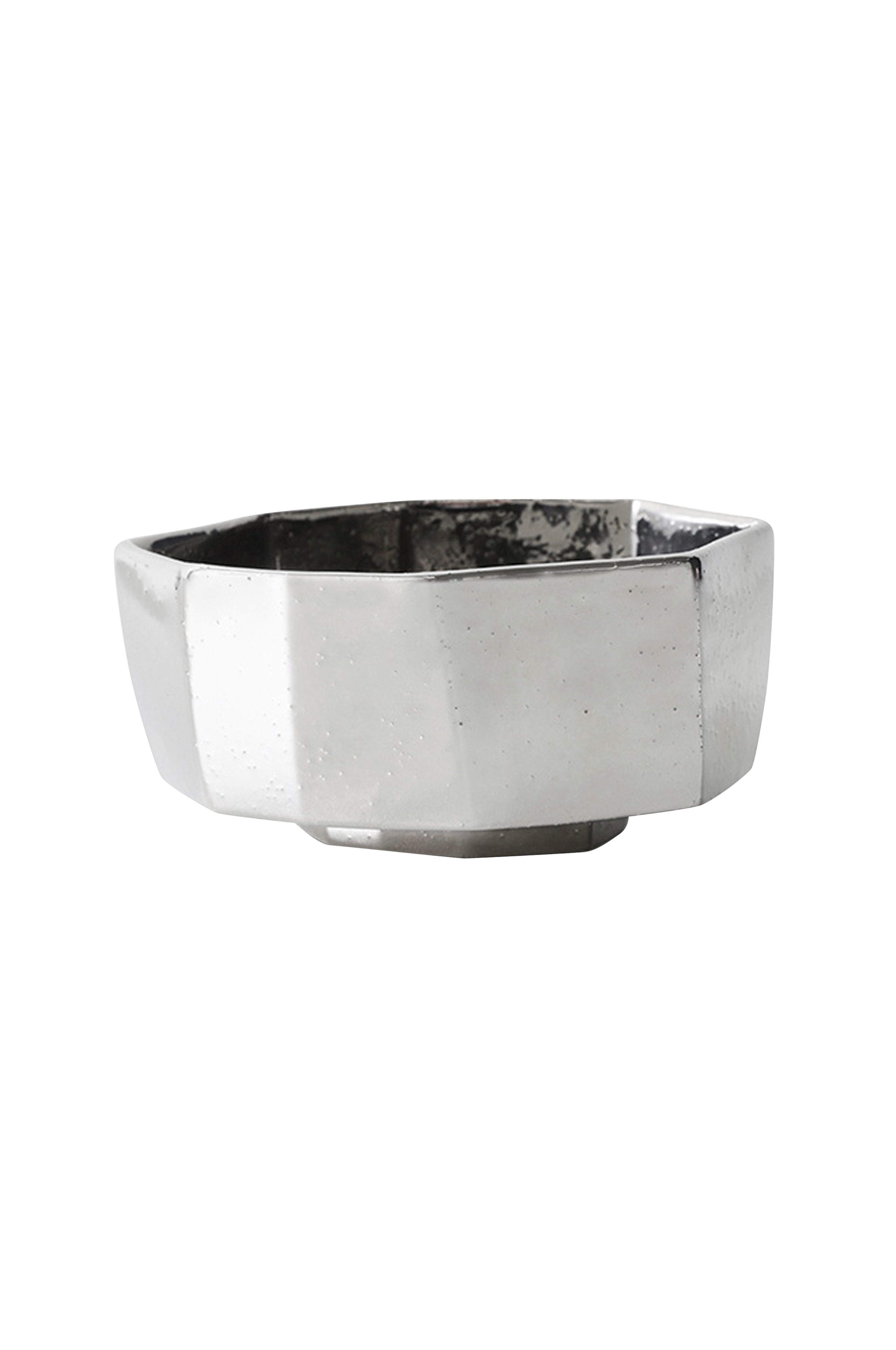 Denne keramiske skål skiller sig ud med sin ujævne, organiske form og slående kromglasur. Kontrasten mellem den rå form og den reflekterende overflade skaber et skulpturelt look – perfekt som funktionel accent eller dekorativt midtpunkt. Den giver et strejf af det uventede til enhver hylde, bord eller udstilling. Materiale: Stentøj. Der kan forekomme forskelle. Kan bruges i mikroovn og opvaskemaskine.