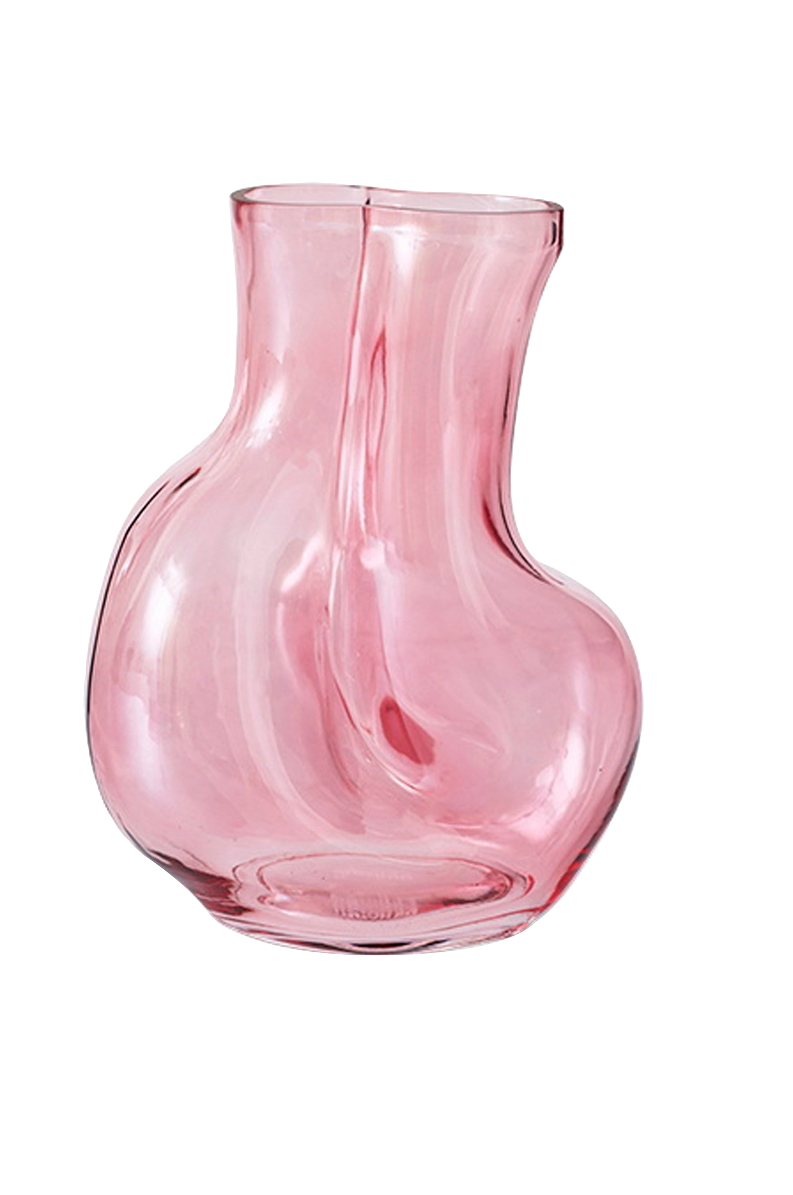 Bring en subtil elegance til dit rum med denne lyserøde glasvase. Dens organiske form er inspireret af naturens blide kurver, mens den moderne finish skaber en slående, moderne accent. Ideel til friske blomster eller blot som et skulpturelt element.