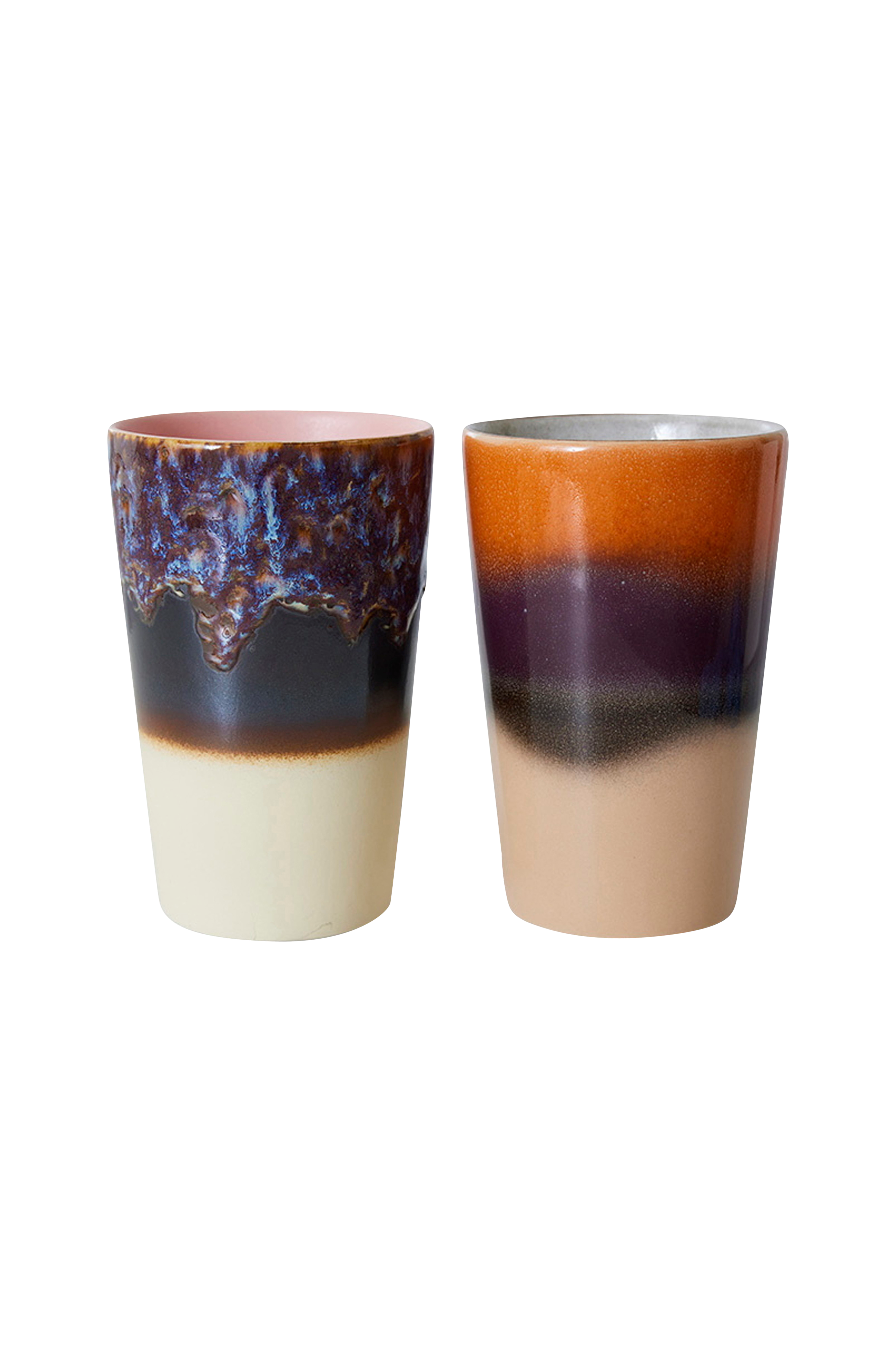 Tekrusene rummer 475 ml, og har flotte farvekombinationer i en retro 70'er-inspireret keramikkollektion. De teksturerede og håndlavede overflader gør hver del unik. Materiale: Stentøj med reaktiv glasur. Mål: 8,7x8,7x13,5cm. Kan bruges i mikrobølgeovn, samt opvaskemaskine. Fødevaresikker.