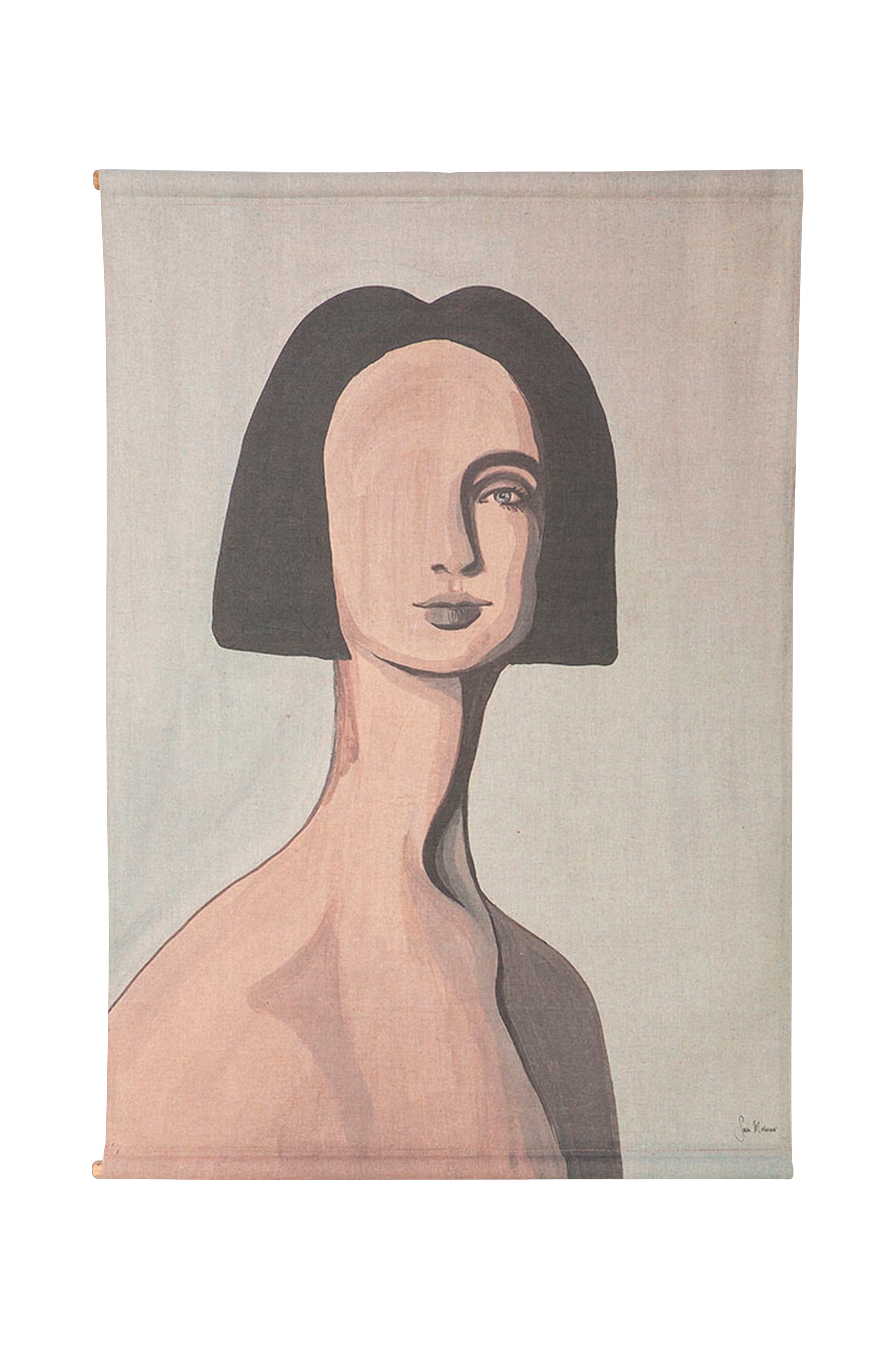 Vægdekoration Woman portrait er i bomuld med rammeliste i træ. Design: Sella Molenaar. Længde 100 cm og bredde 70 cm.