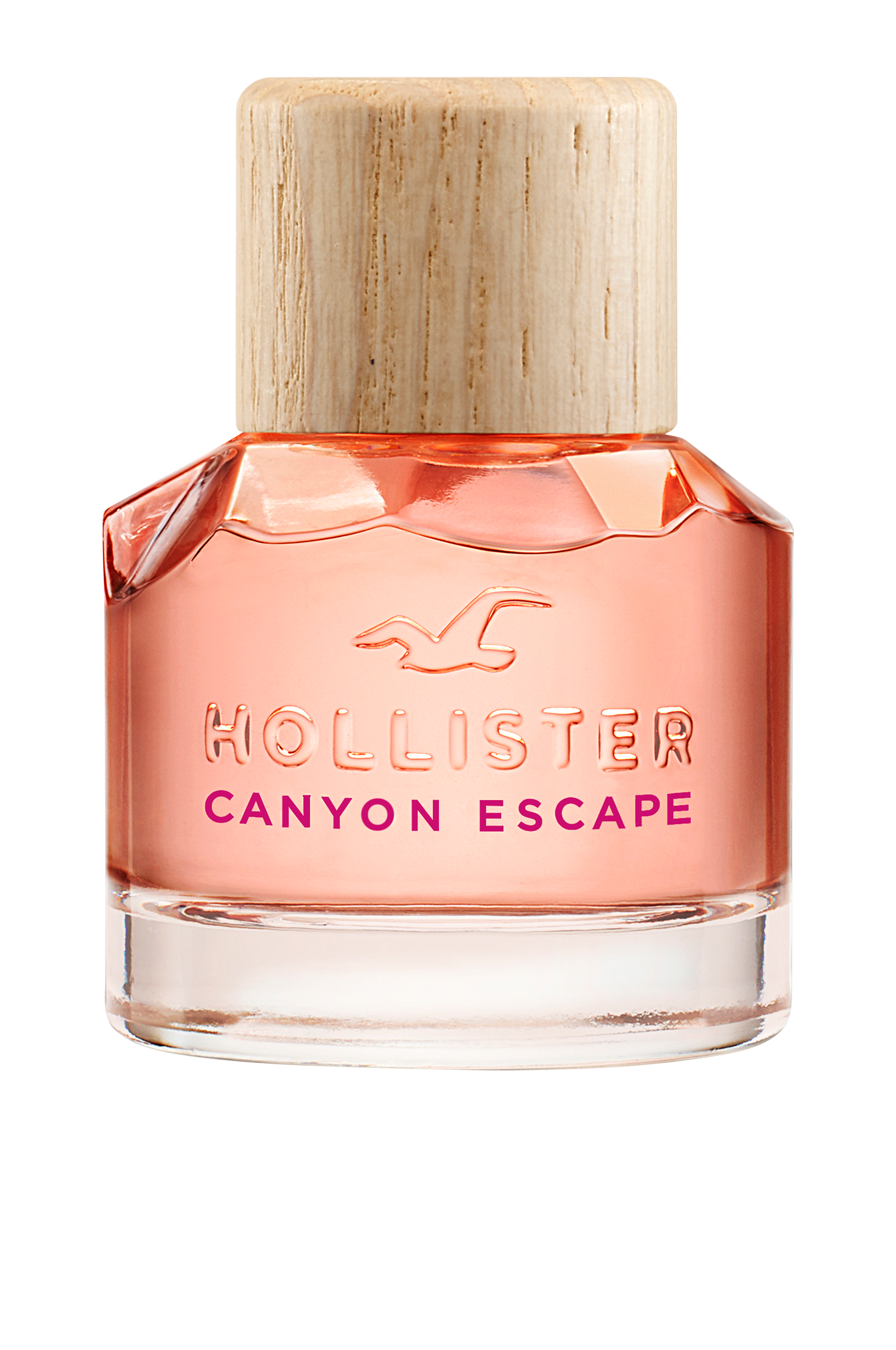 Hollister Canyon Escape for Her er en sprudlende blomsterduft som er lige så strålende og bekymringsfri som en solnedgang over bjergene. Eksplosionen af opfriskende blodappelsin, mandarin og kaktusvand skaber en perfekt base. Hjertenoten byder på en blanding af appelsinblomst, ørkenrose, iris og sol som fører tanken til den californiske ørken. Basenoten med sandeltræ, cedertræ og moskus efterlader en skøn varme, der minder om solen på hendes hud. Uafhængige Hollister-kvinder kender kunsten at nyde spændingen ved en eventyrlig udflugt. En flaske med en unik form inspireret af en klippeformation minder om de lykkelige minder, som blev skabt på en herlig udflugt med vennerne. Parfumens levende rosa farve giver et feminint touch. Det prægede Hollister-logo bidrager til at understrege duften yderligere.