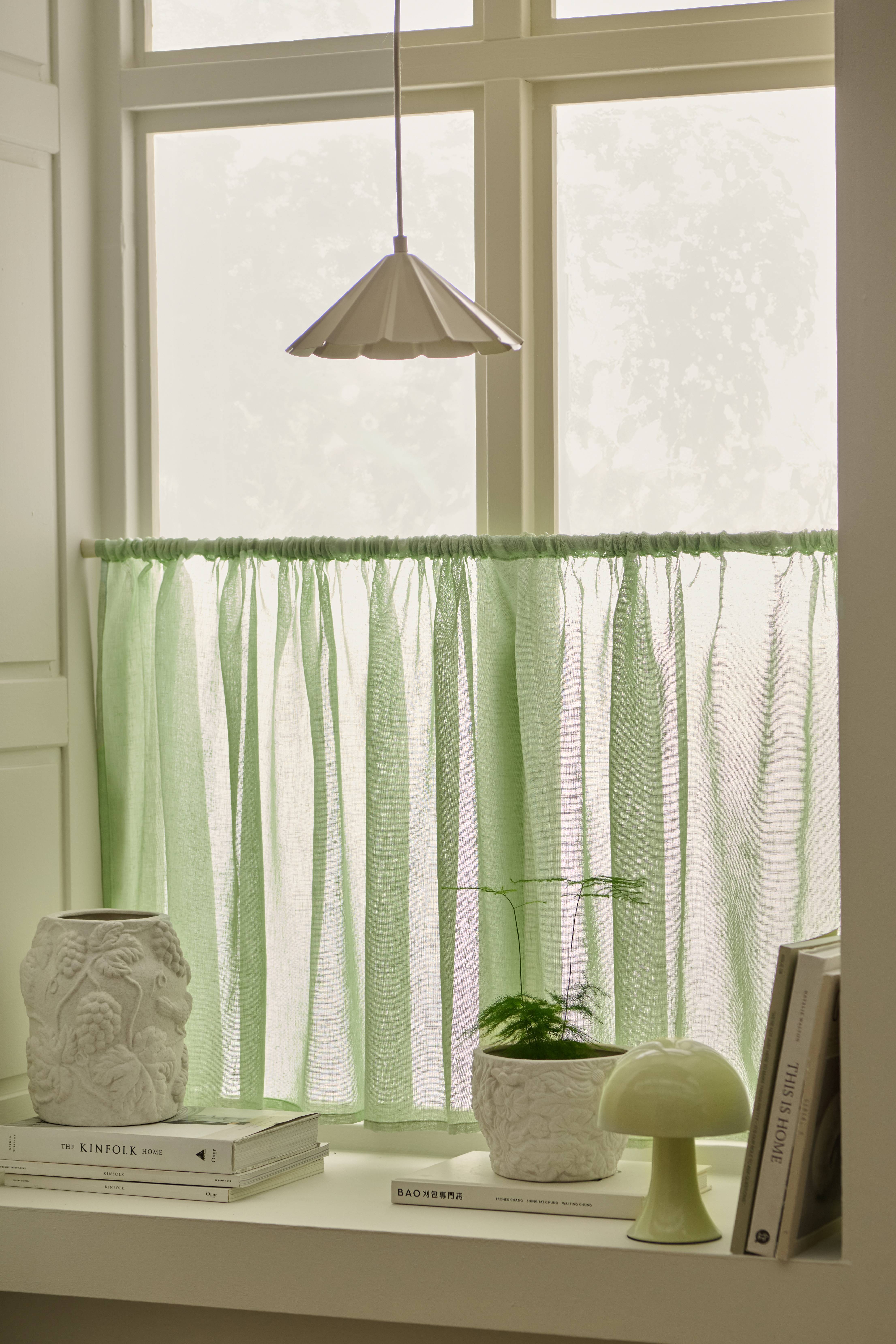 • Café-gardin i åbent stof, blød polyester
