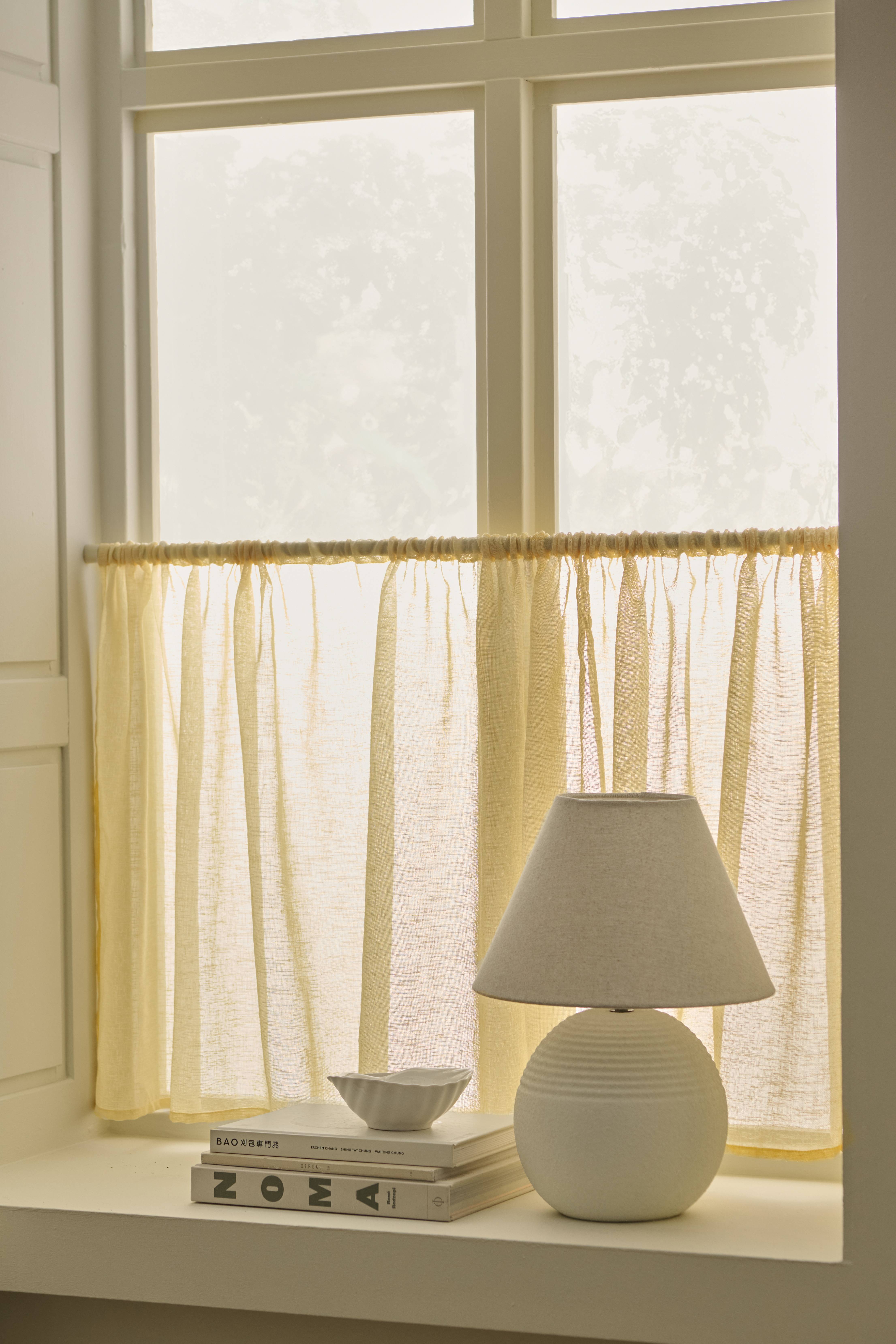 • Café-gardin i åbent stof, blød polyester