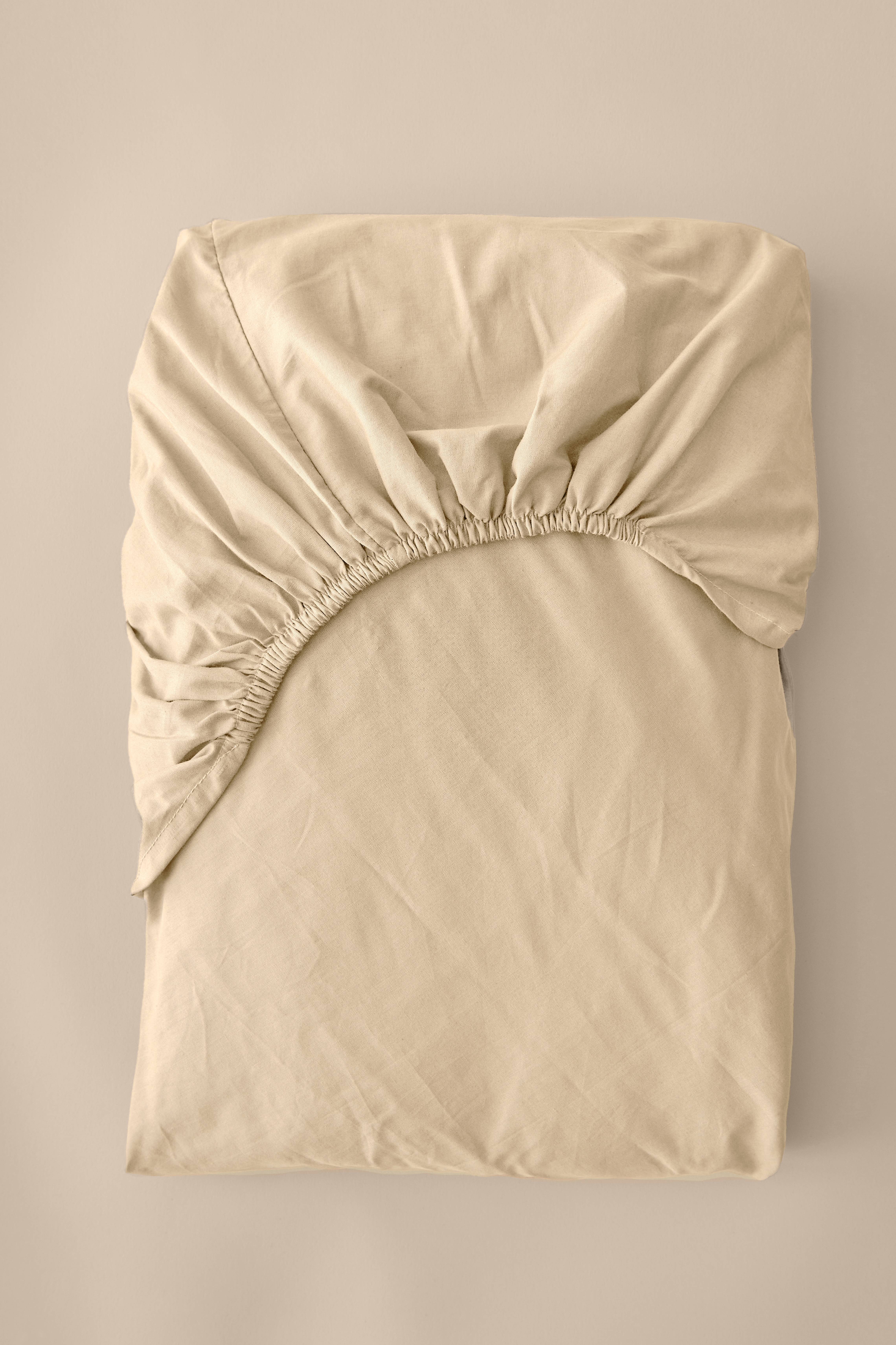 Faconsyet lagen i blød bomuld. Trådtæthed 144 TC. Elastikbånd i hjørnerne. Hjørneelastik 25 cm. Passer til madrasser op til 10 cm.