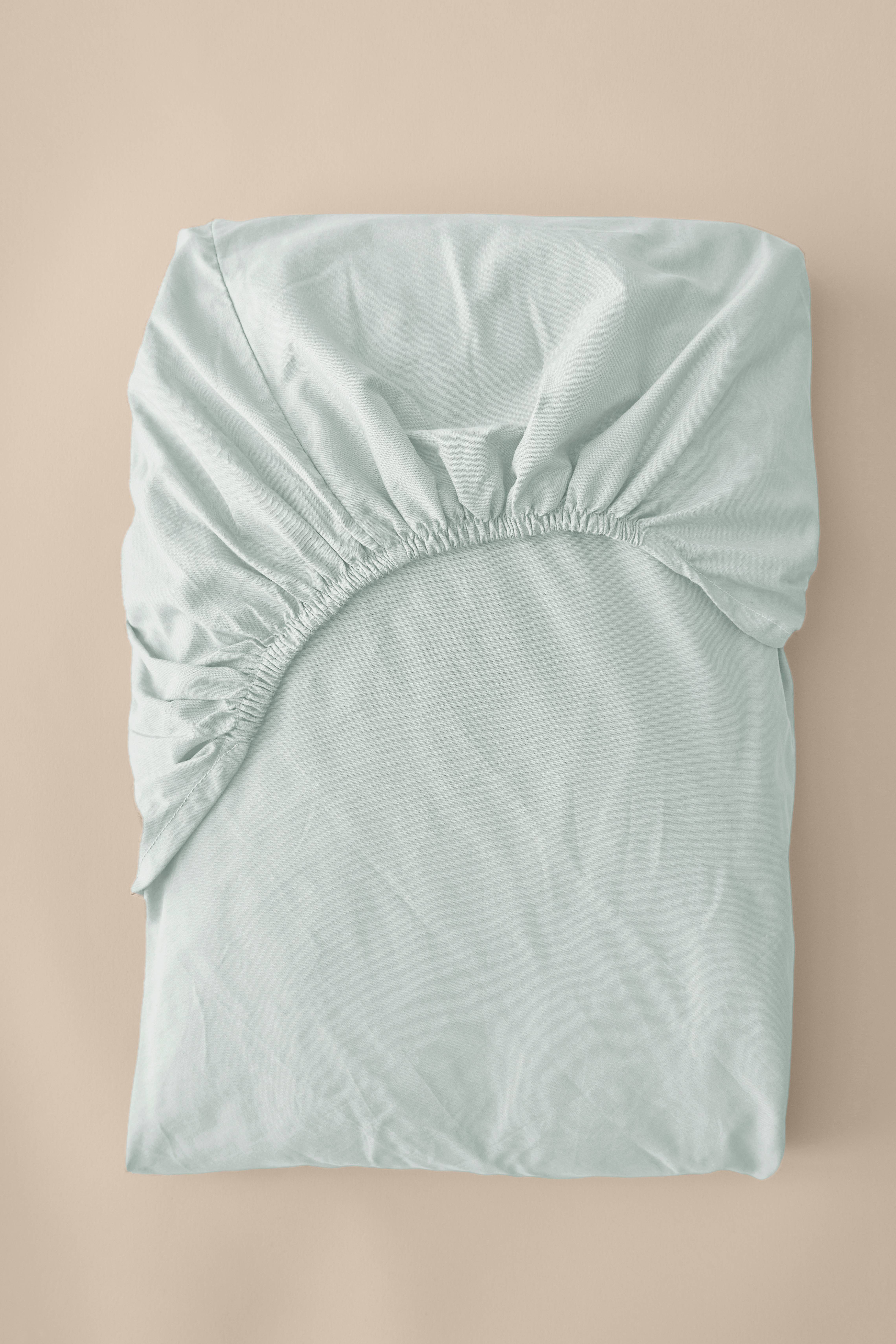Faconsyet lagen i blød bomuld. Trådtæthed 144 TC. Elastikbånd i hjørnerne. Hjørneelastik 25 cm. Passer til madrasser op til 10 cm.