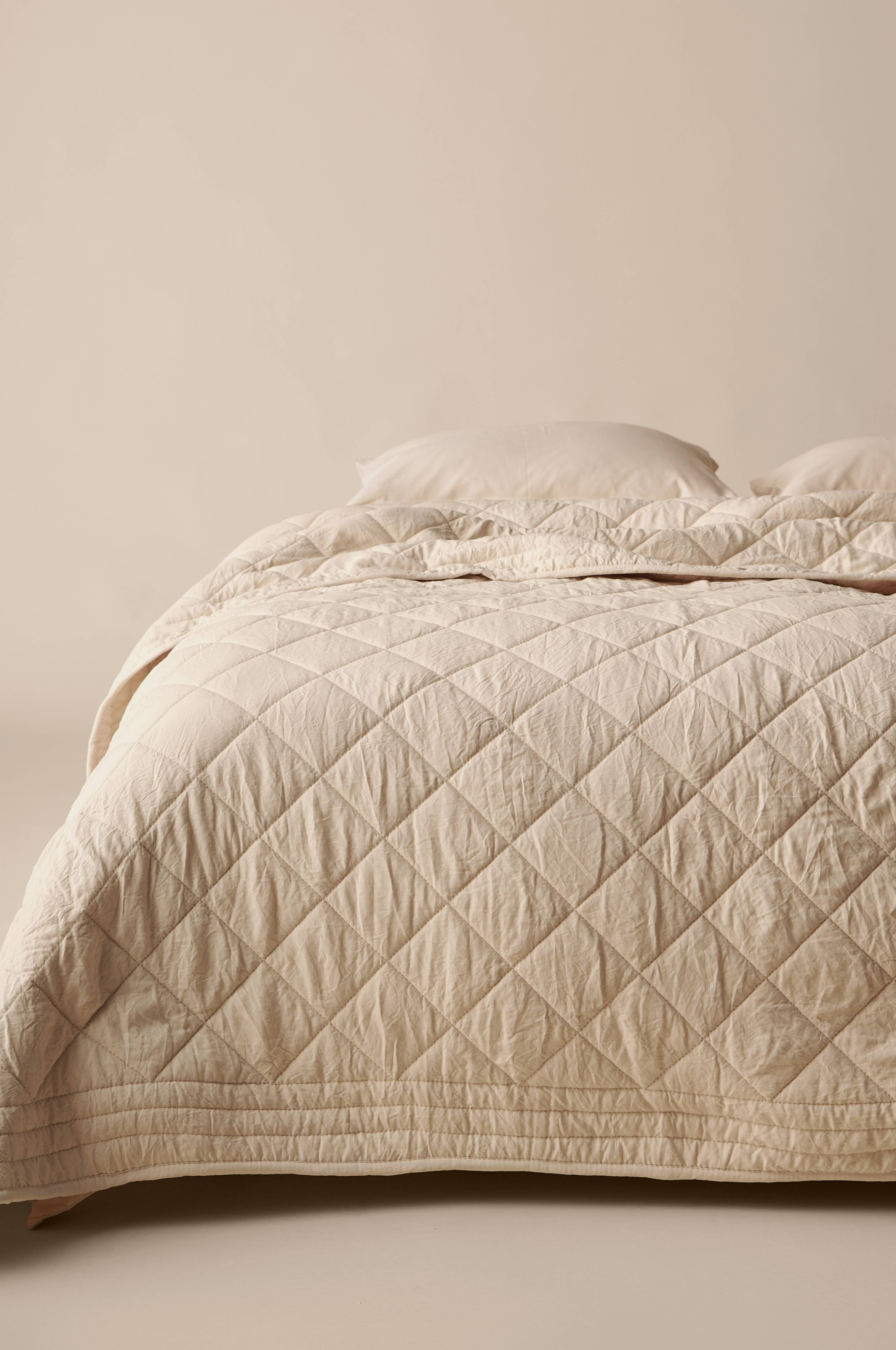 Ternquiltet sengetæppe i vasket kvalitet. Fyld af polyester (90 gsm).