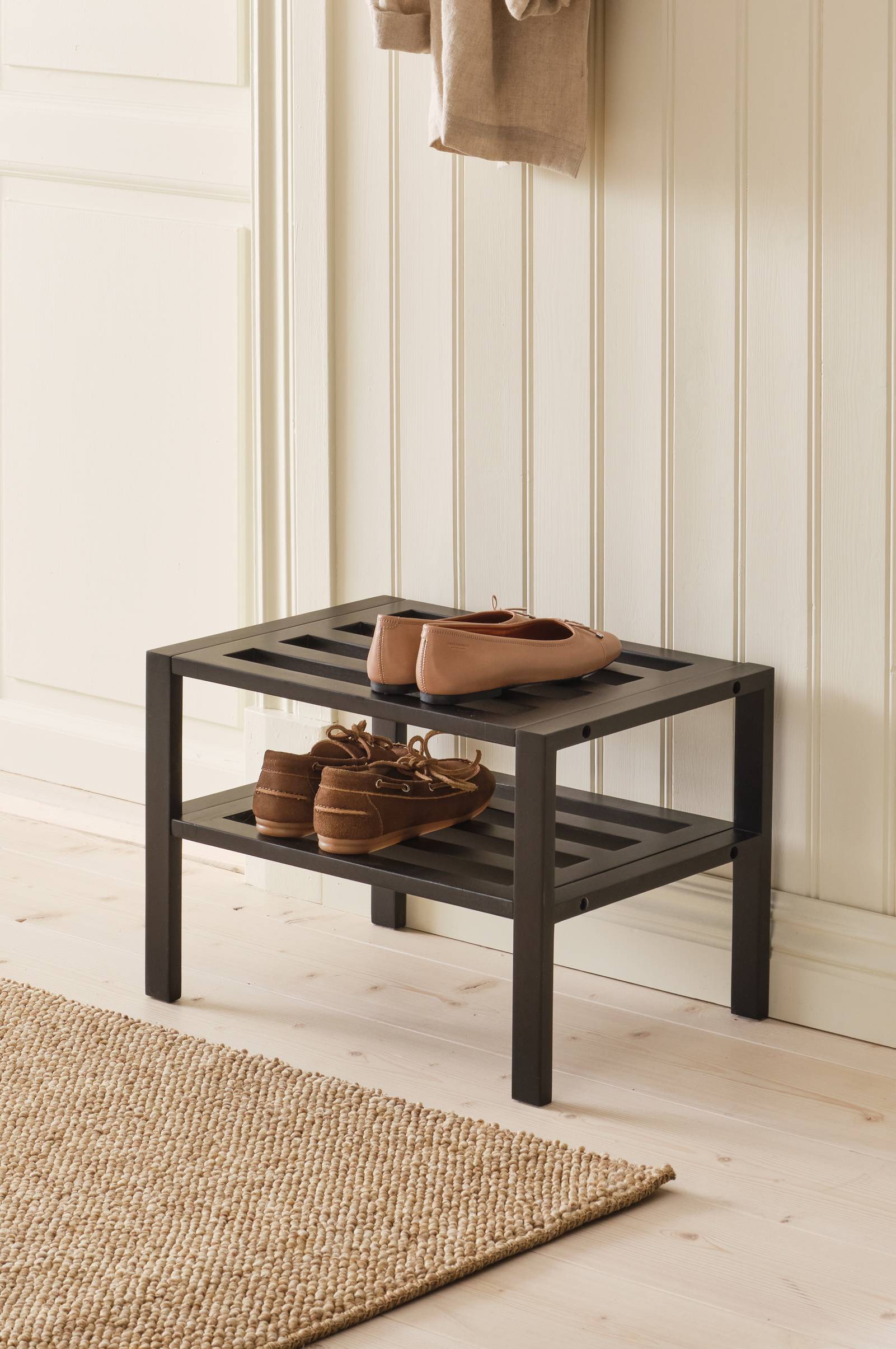 Pæn og funktionel! Lige lille nok til at passe i entréen og rydder fint op i skobunken.