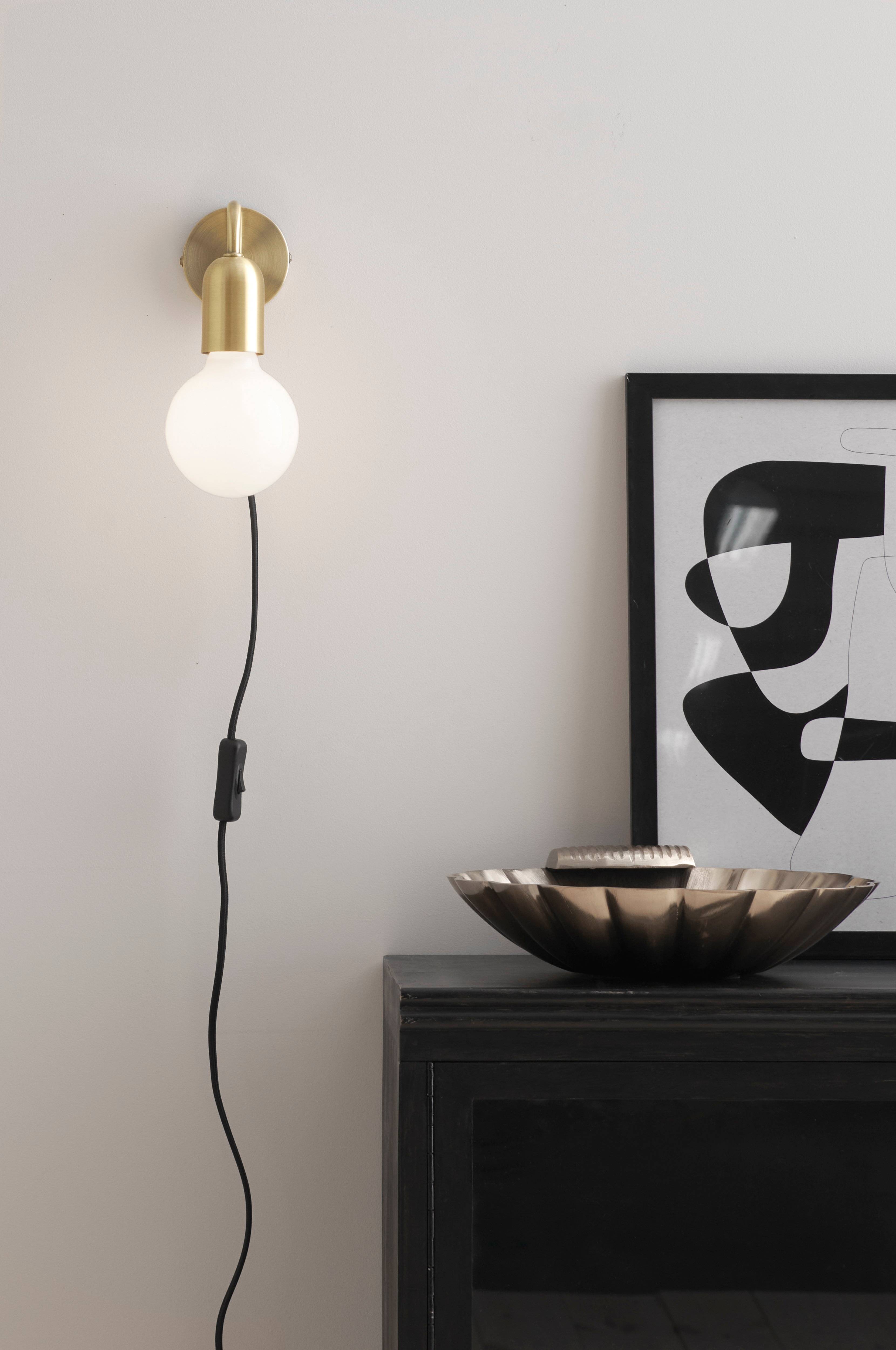 En væglampe i moderne design som også er egnet som sengelampe. Af metal. Stofledning med strømafbryder. Diameter på vægbeslag 8 cm. Pære medfølger ikke. Forskellige typer af lyskilder kan have stor indvirkning på lampens stil og udseende. Prøv dig frem for at finde din egen stil!