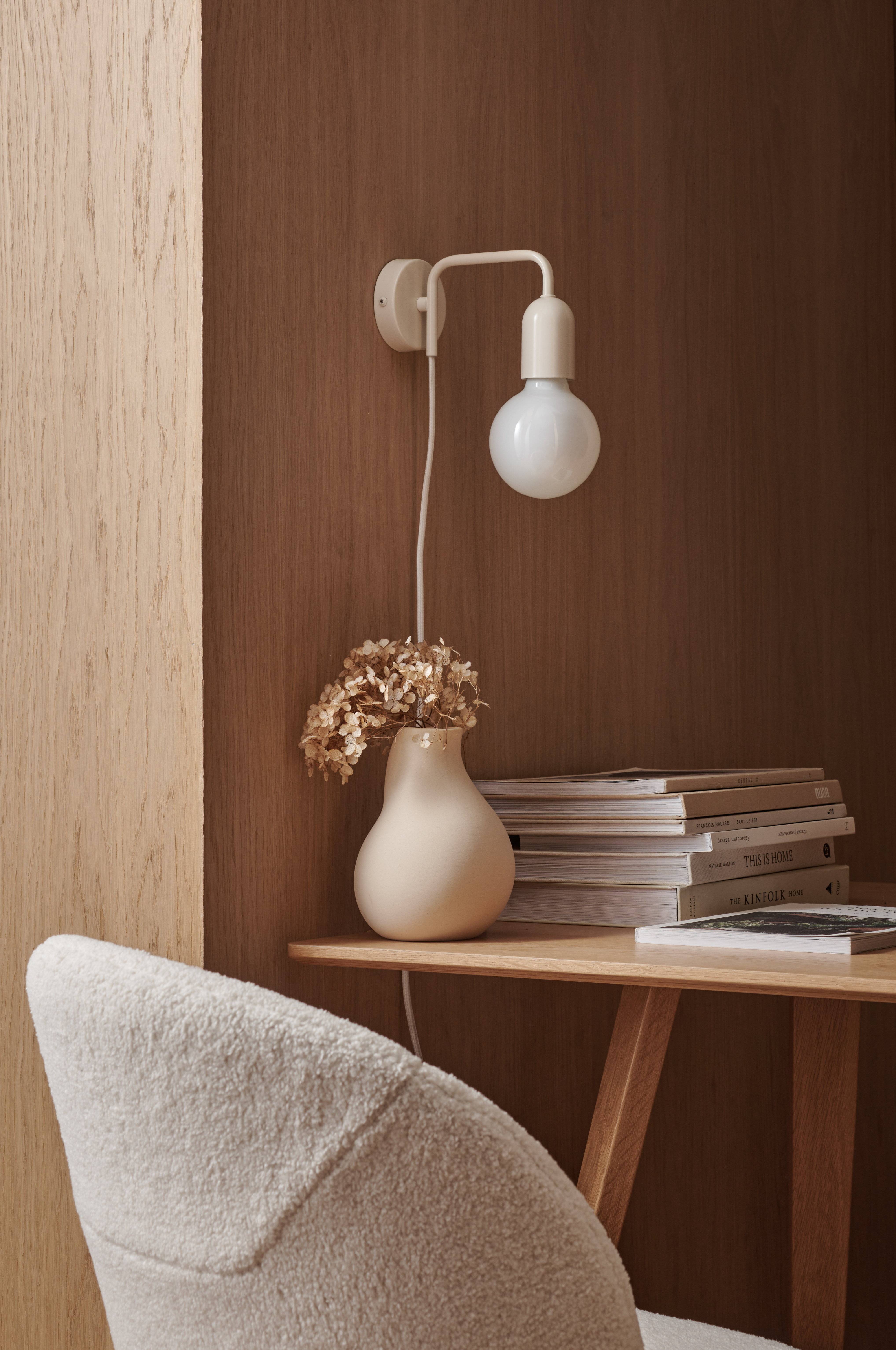 En væglampe i moderne design som også er egnet som sengelampe. Af metal. Stofledning med strømafbryder. Diameter på vægbeslag 8 cm. Pære medfølger ikke. Forskellige typer af lyskilder kan have stor indvirkning på lampens stil og udseende. Prøv dig frem for at finde din egen stil!