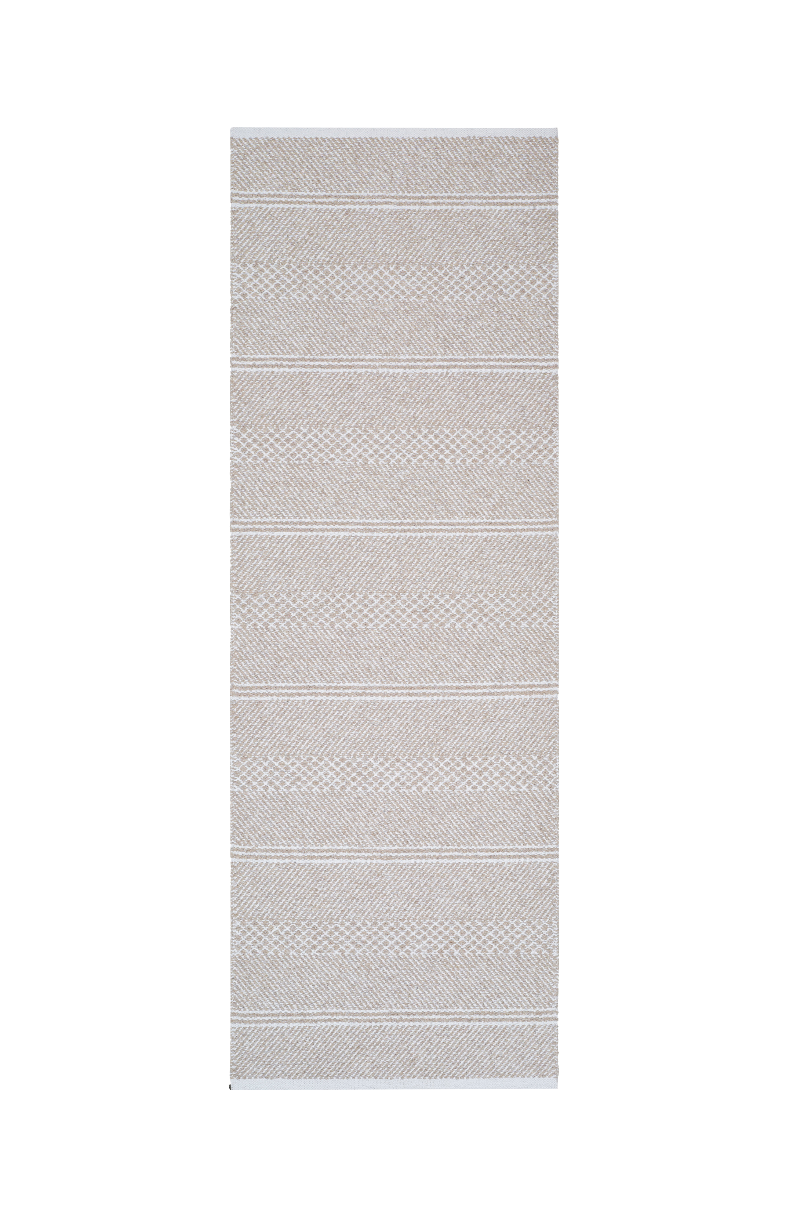 Meget tilfreds! Plastmåtte blandet med bomuld, så den ligner en 'almindelig' kluddetæppe. Ligger godt på gulvet. Flot grøn farve!