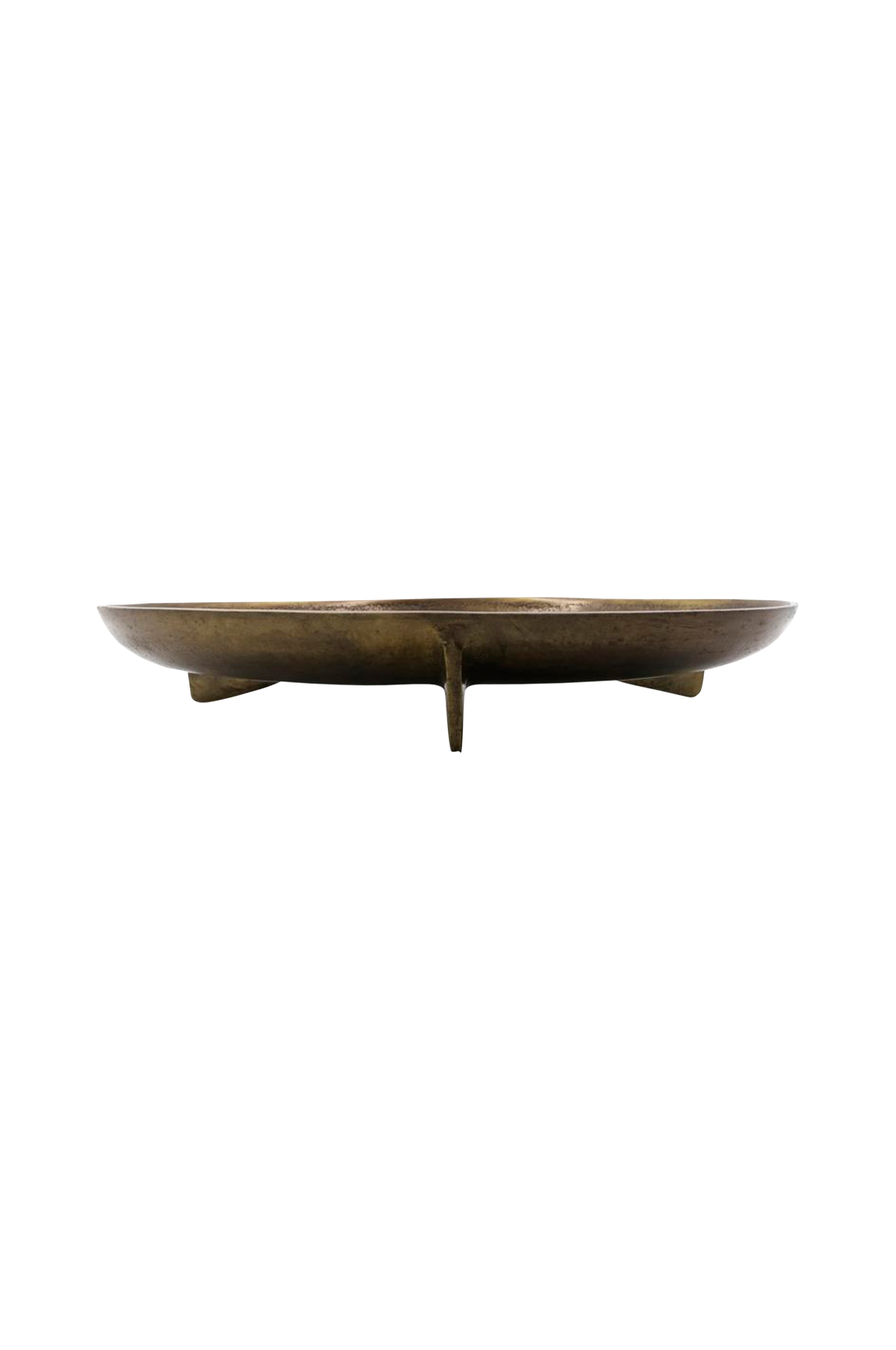 Brug en dekorativ bakke til at samle din yndlingsindretning til hjemmet. Cast fra House Doctor er en rund aluminiumsbakke med en gylden messingfinish og en let vinklet overflade. En perfekt kombination af elegant design og et diskret touch. Lad bakken blende ind med dit spisebord blandt lysestager og vaser, eller placer genstande i andre materialer og med stilfulde overflader på bakken for at skabe en unik centerpiece på bordet. Takket være de små fødder på bakken løftes det, du placerer på bakken, fra bordet og sættes i fokus. Højde 6 cm og diameter 38 cm.
