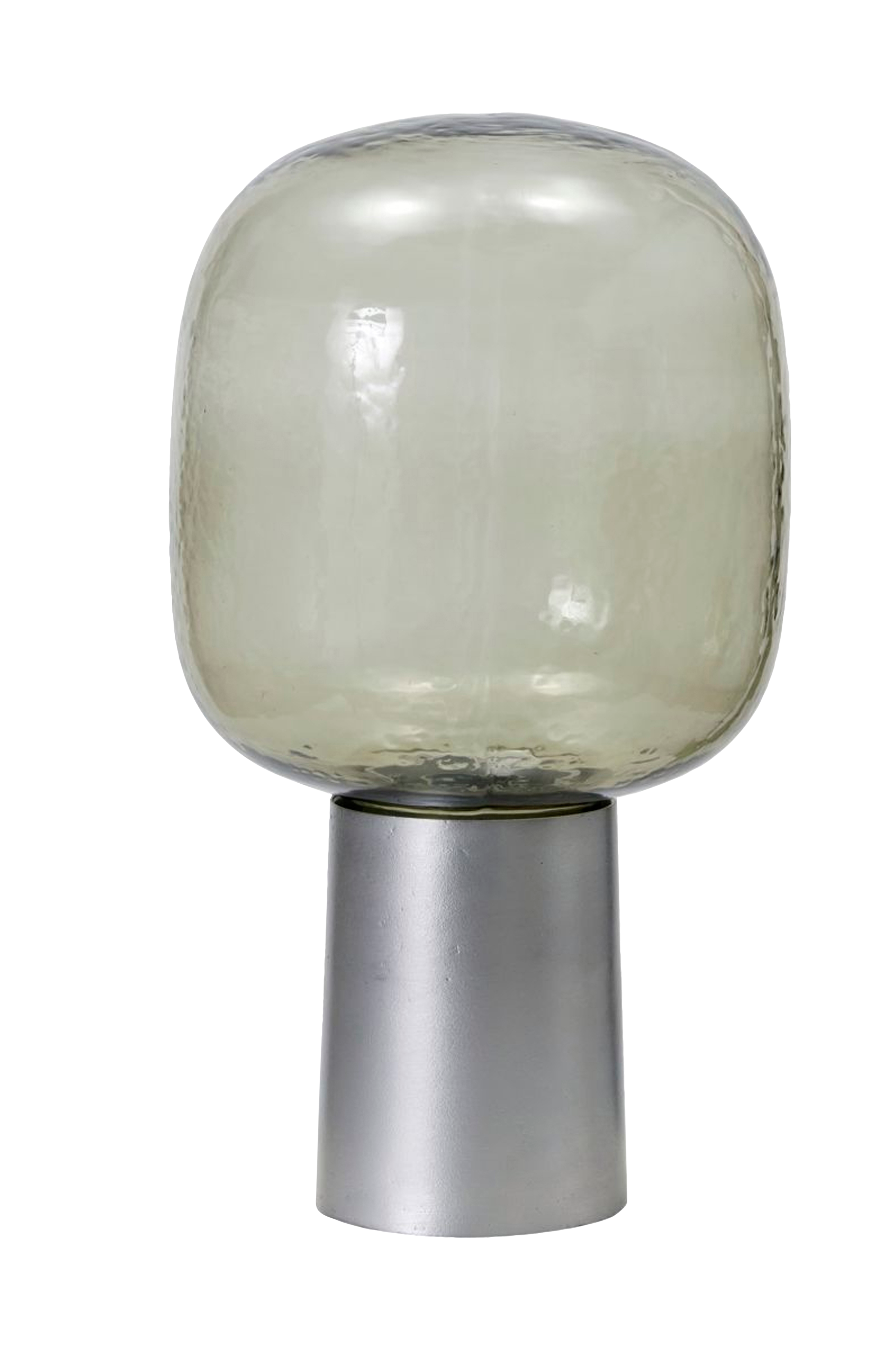 Bordlampen Note fra House Doctor giver dit hjem en blød belysning. Balance definerer designet, da lampeskærmen er let struktureret med en størrelse, der står i kontrast til den mindre base. Skærmen er i glas og foden er i aluminium. Højde 52 cm og 28 cm i diameter.