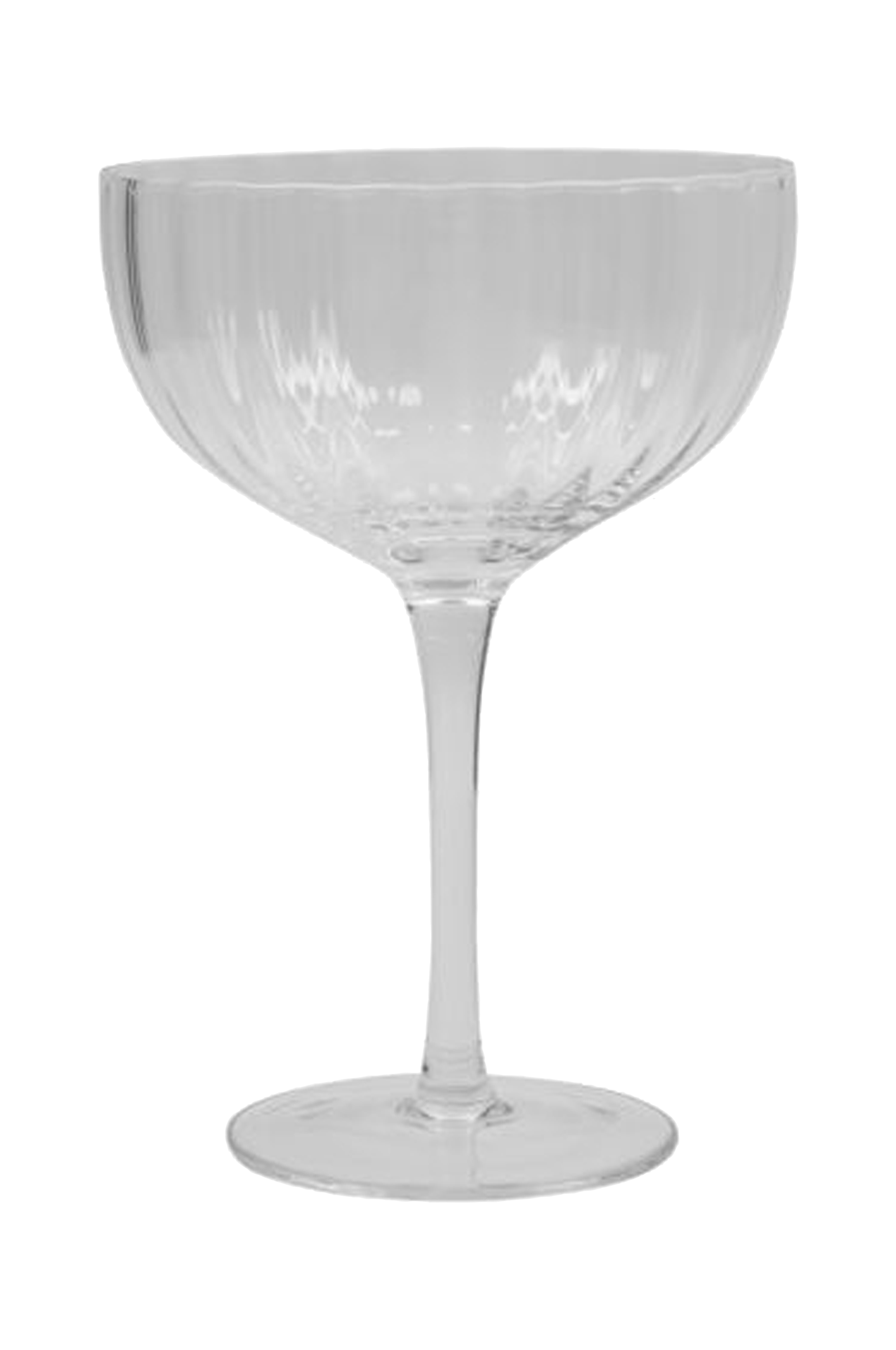 Et klassisk cocktailglas er et must i enhver hjemmebar. Dette design er også kendt som en coupe og kan også rumme din champagne, hvis du er til den traditionelle, gammeldags stil. Dets riflede design tilføjer subtile detaljer, som passer til enhver form for borddækning. Det er det ideelle glas til cocktails, da stilken forhindrer dine hænder i at opvarme din drink. Godkendt til opvaskemaskine, maks. 60° C.