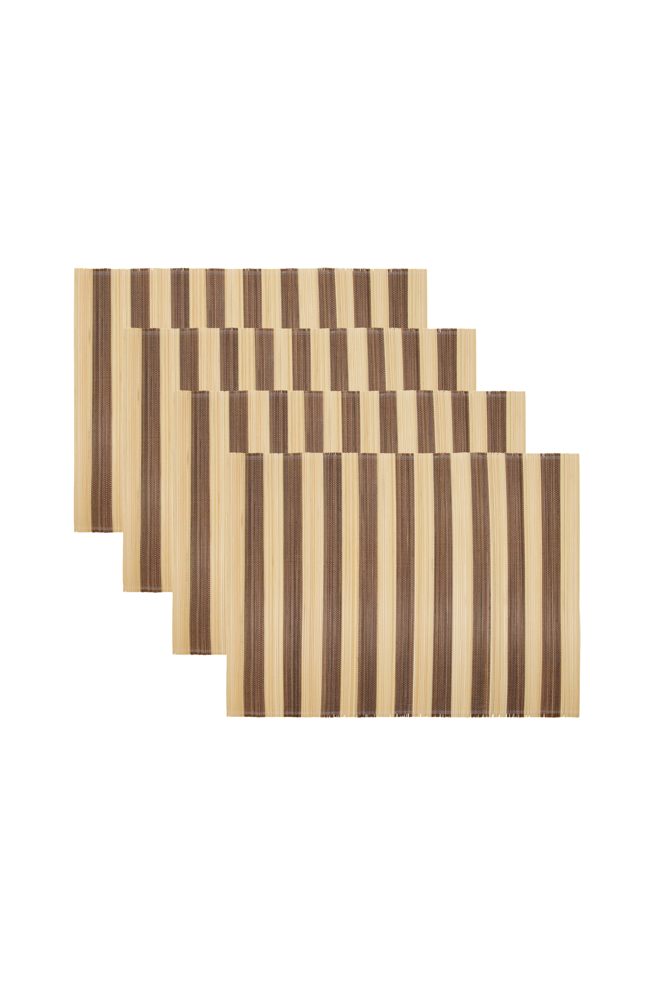 Giv din spiseplads en naturlig charme med disse håndlavede bordskånere. De er fremstillet af en blanding af bambus og bomuld og har tidløse striber i grøn og råhvid. Dette sæt med fire måtter giver et perfekt strejf af farve og elegance til din borddækning og gør hvert måltid til en stilfuld affære. Håndlavet bambus og bomuld. Forbedrer bordets æstetik. Tilføj en levende accent til dit spisebord.