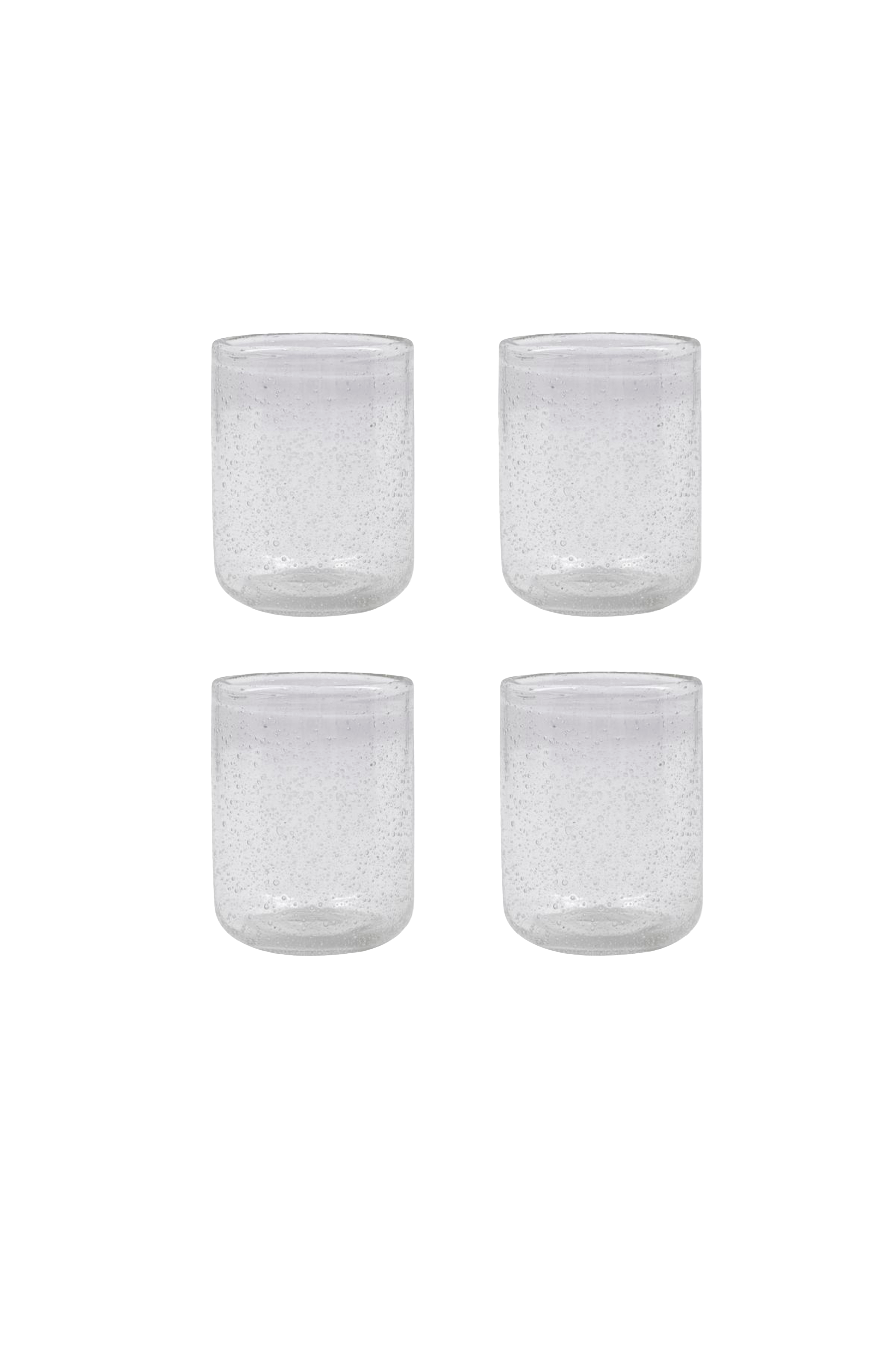 Glas Rich fra House Doctor i moderne design er et must til enhver lejlighed. Glassets udseende er afslappet og fuldendes af luftbobler for at give kontrast til det massive glas. Hvis du vil skabe et mere sammenhængende look på bordet, kan du kombinere disse glas fra House Doctor med kanden i samme design. Med det alsidige design passer glassene perfekt til hverdagen og når vennerne kommer på besøg. Eftersom de er håndlavede kan størrelsen variere. 4-pak. Højde 11 cm og diameter 9,5 cm.