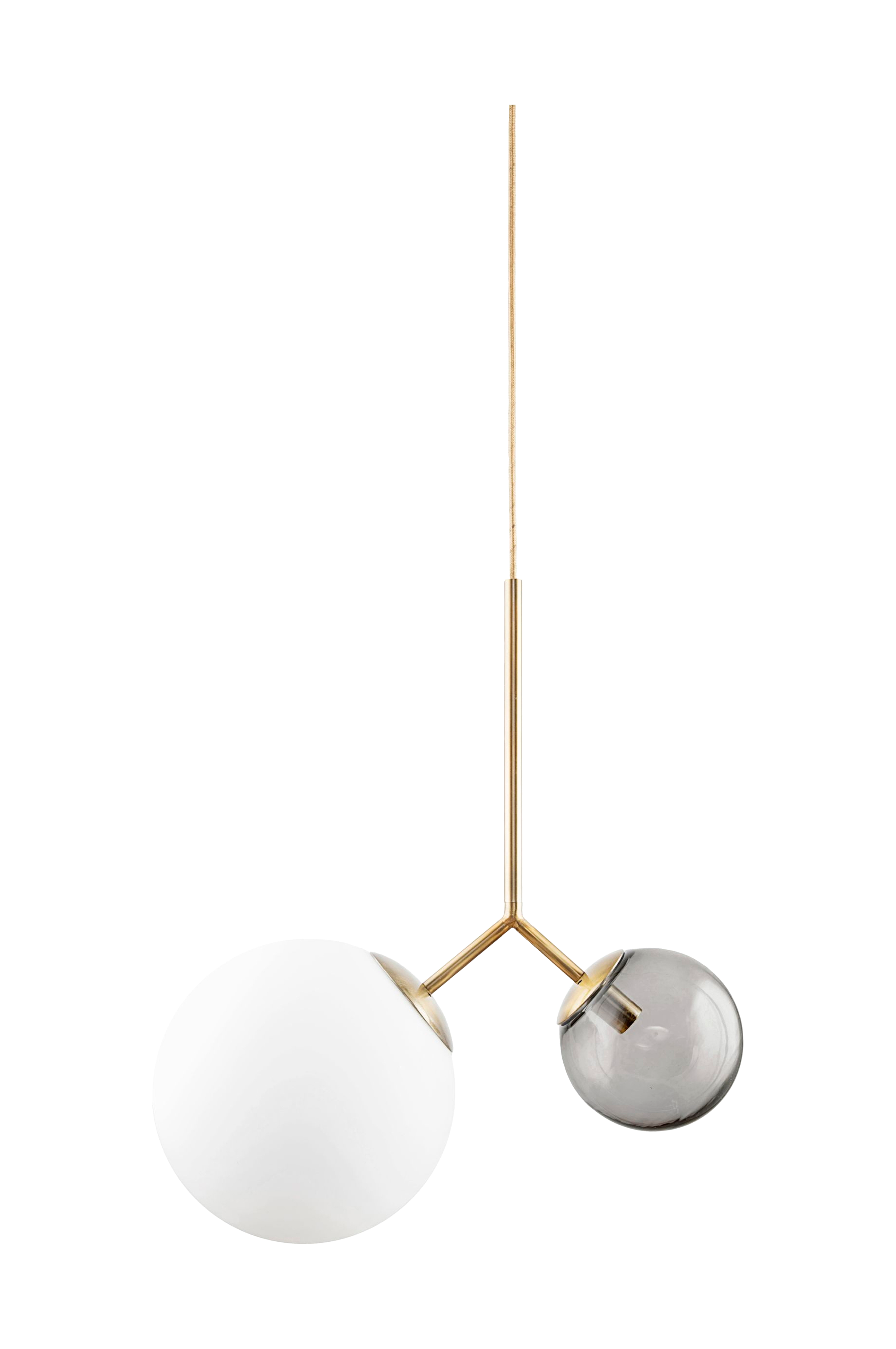 Lamper er vigtige elementer, når du vil skabe en personlig og stemningsfuld indretning. Med Twice fra House Doctor får du en smuk loftlampe med et elegant og fint udtryk. Lampen har et smukt asymmetrisk design, der tilføjer indretningen karisma og alsidighed. Med sine messingdetaljer har lampen et utroligt fint udtryk, der er både råt og klassisk på samme tid. Den kan bruges i de fleste rum i boligen - lad fantasien få frit spil. Brug den i entreen, over spisebordet eller i et hjørne af stuen og skab et vidunderligt og unikt look i indretningen. Dette produkt er håndlavet, hvilket betyder, at der kan forekomme en vis variation i farve, størrelse og form. E14, 25 Watt. Ledningslængde: 2,30 m.