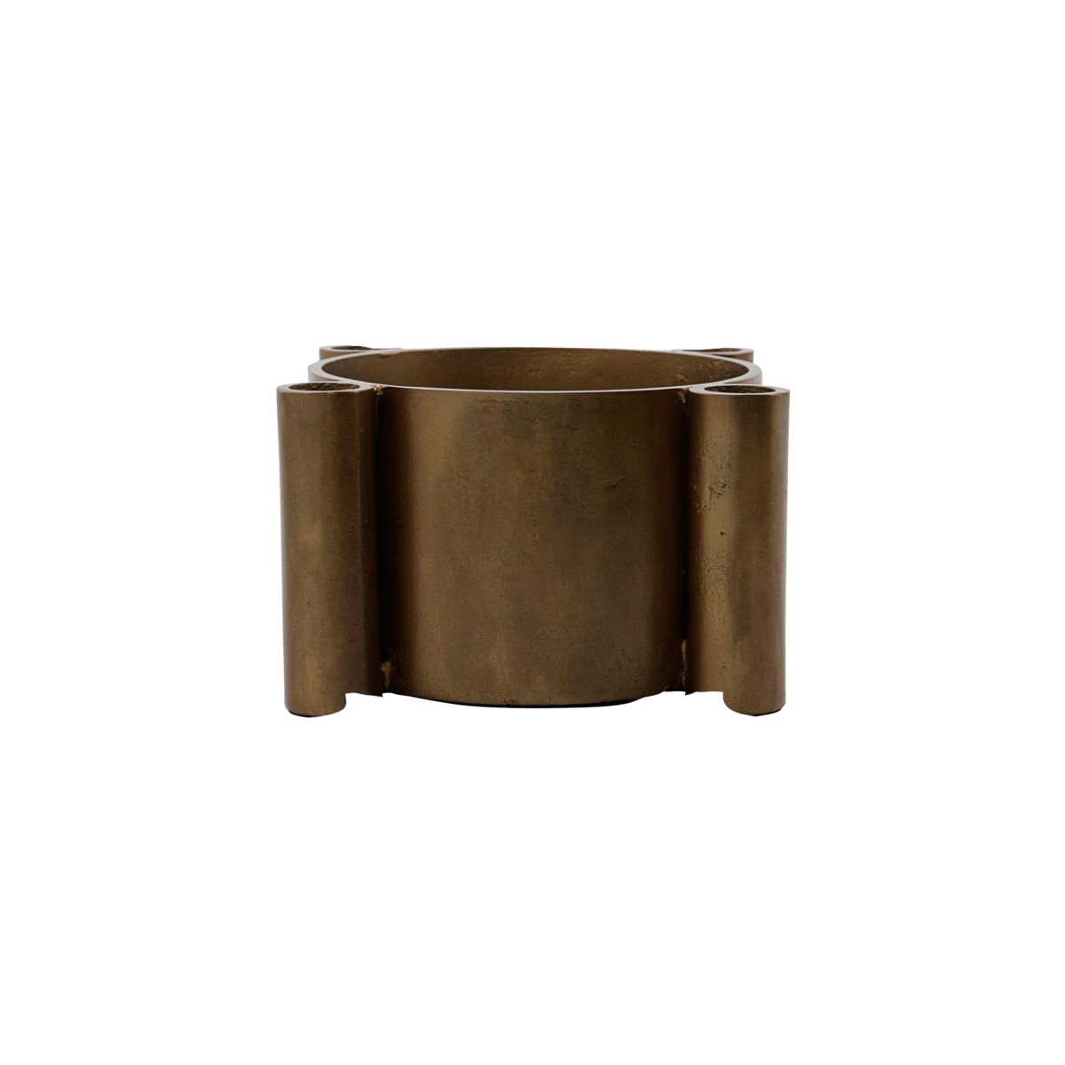 Giv din julepynt et industrielt twist med lysestagen Four fra House Doctor. Aluminiumsoverflade med en lidt robust finish, hvilket giver den runde lysestage et råt look samtidigt med at den gyldne nuance giver et klassisk touch. Brug Four som du vil - med eller uden ekstra pynt. Med intet andet end levende lys bliver det en moderne og minimalistisk adventskrans. Pyntet med juletræskugler og anden pynt i midten får du en personlig og festlig lysestage på dit middags- eller sofabord. Egnet til lys med en diameter på 2 cm.