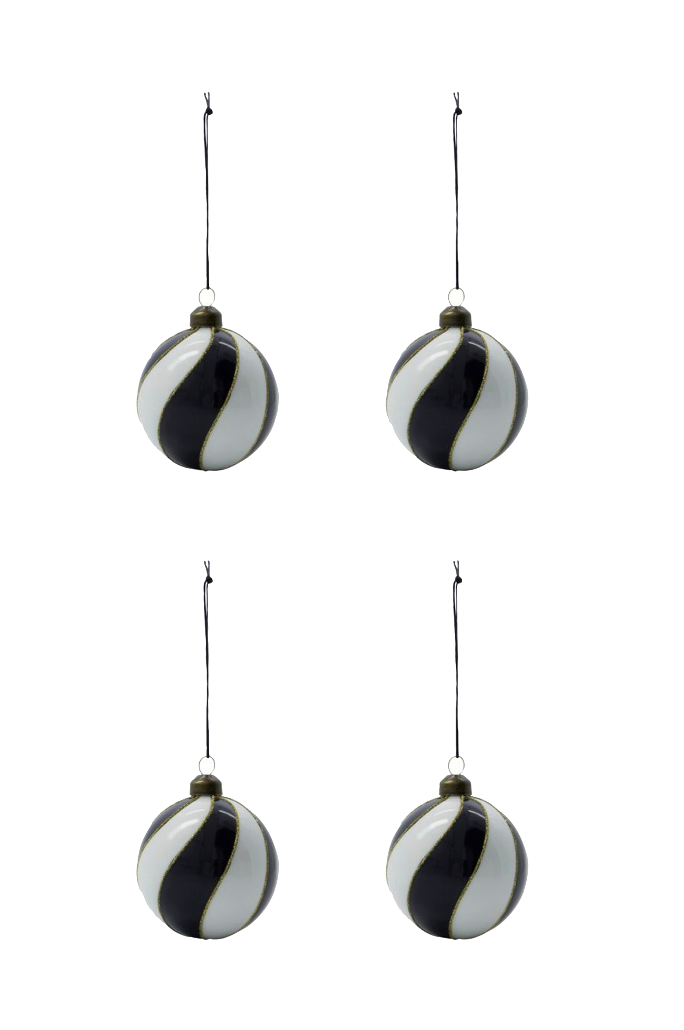 Sort som julefarve? Helt sikkert. Dette sæt med 4 sorte og hvide hvirvelkugler fra House Doctor er en uventet opfriskning af din juletræsdekoration. De blander en klassisk hvirvel med moderne farver og tilføjer finesse til din juledekoration. Brug kuglerne som en ny detalje i din dekoration med guldtema eller til at fremhæve dine klassiske sølvfarver. Du kan ikke gå galt i byen med disse kugler, da de passer til alt fra et vintage- til et moderne tema. Rengøres med en tør klud. Mundblæst.