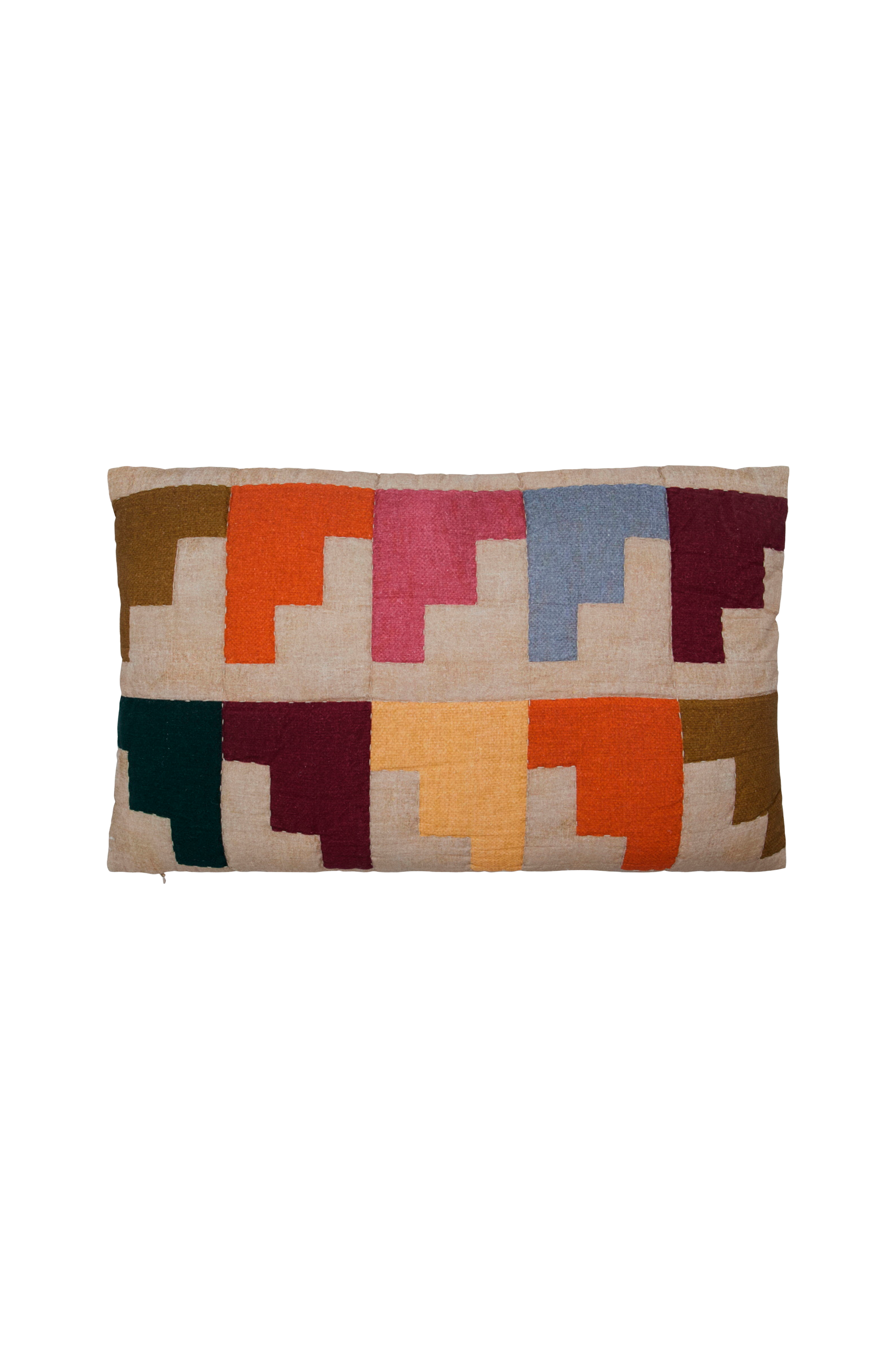 Dette pudebetræk lyser op i dit hjem med et dristigt, håndtrykt grafisk mønster og dekorative syninger. Det flerfarvede design er fremstillet i blød kvalitetsbomuld og giver en moderne, legende accent til din stue eller dit soveværelse. Brug det alene som et kunstnerisk statement, eller bland det med ensfarvede betræk for at skabe dybde og karakter i din indretning.