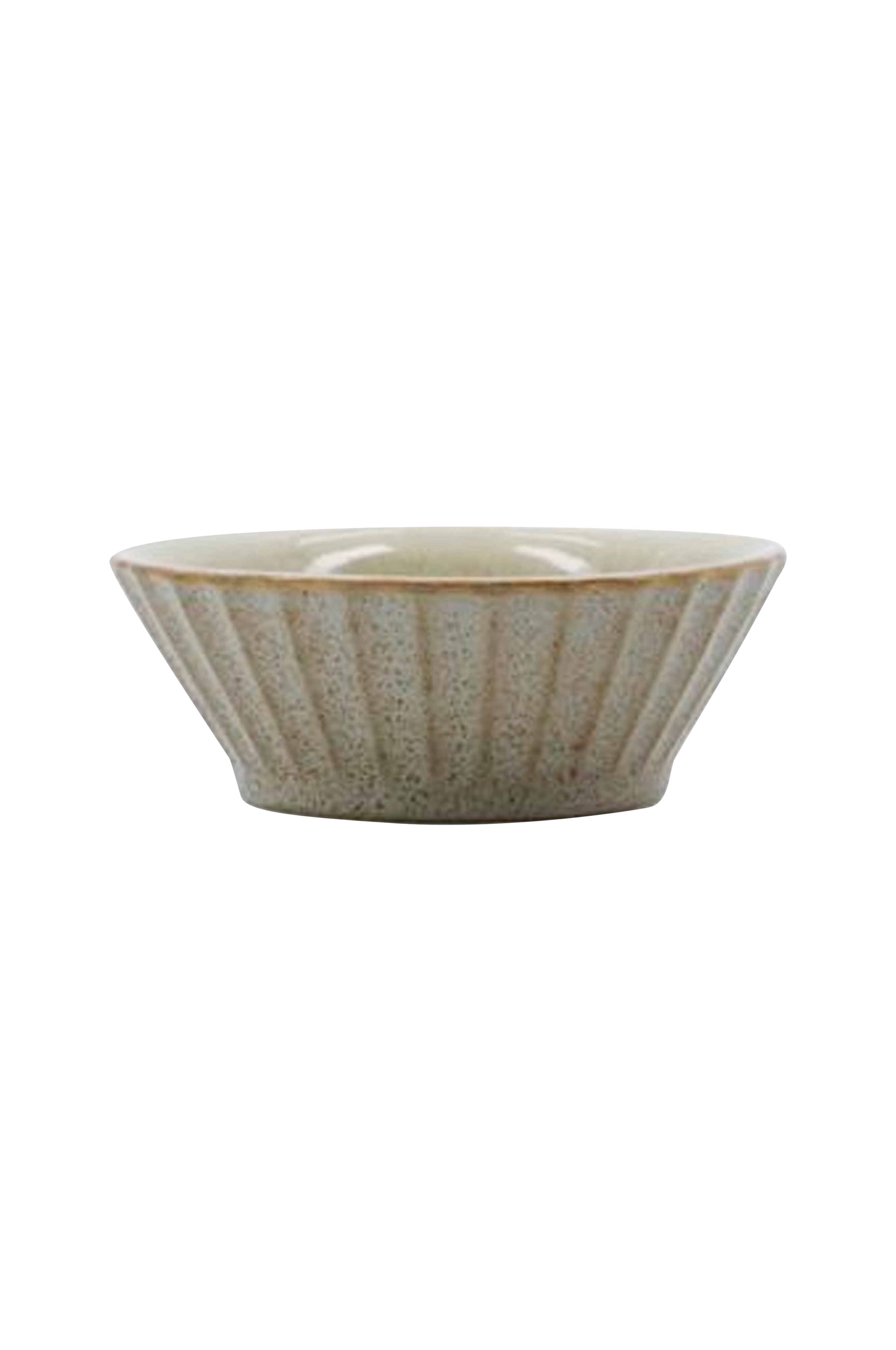 Giv din borddækning et subtilt, men elegant touch med denne lille skål fra House Doctor. Det riflede design er kombineret med en mat yderside og en blank inderside for at skabe et tidløst look. Brug skålen som en lille snackskål til tapasbordet eller til dips, pestoer og saucer, når du har inviteret gæster til middag. Eller fyld den med salt, og stil den på køkkenbordet eller middagsbordet for at tilføje et nip salt til dit måltid. Godkendt til opvaskemaskine og mikrobølgeovn. Ikke godkendt til ovn. Materiale: Stentøj.