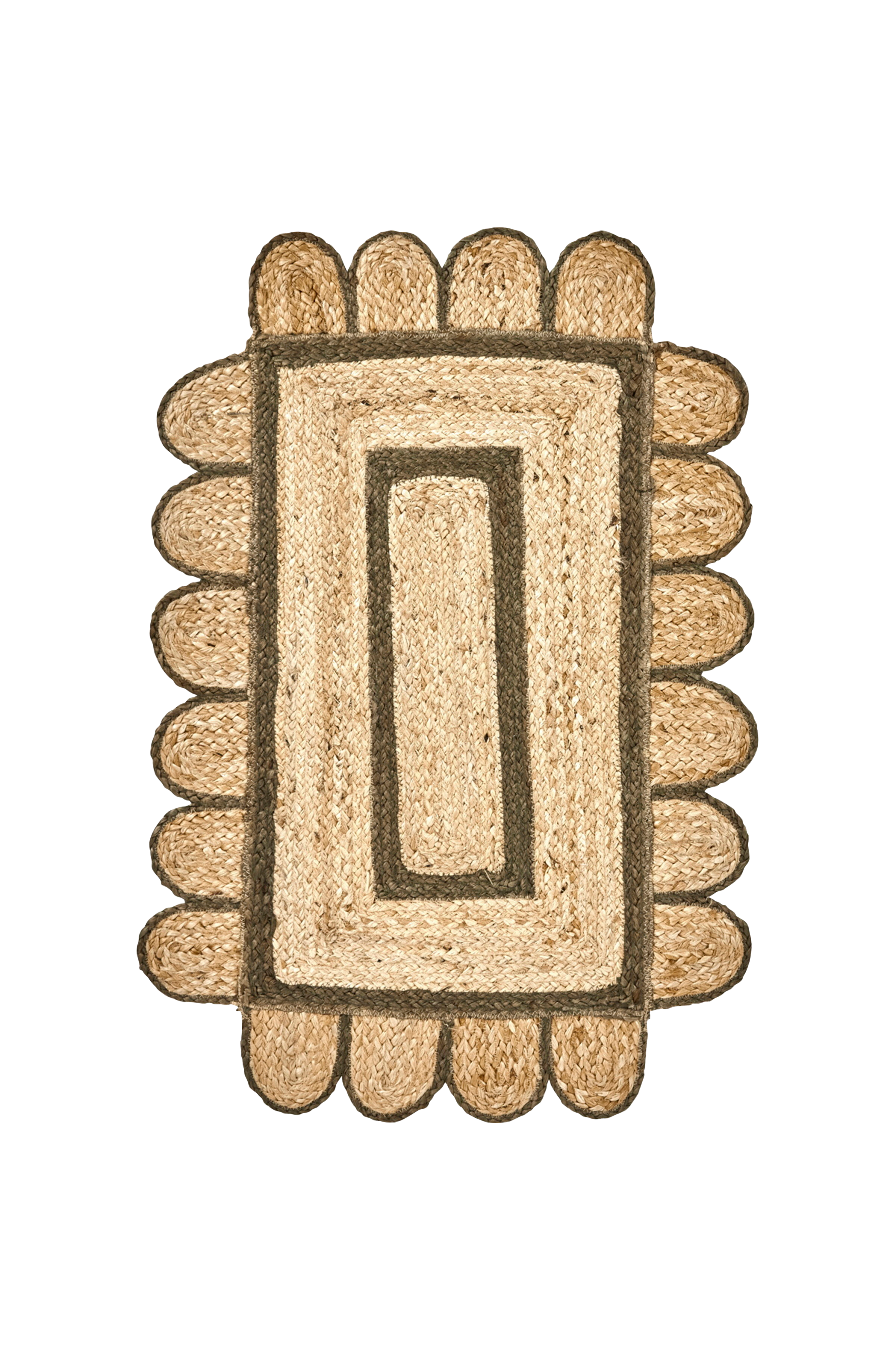 Denne dørmåtte er håndlavet med omhu og kombinerer jute og polyester i en naturlig nuance med et slående sort grafisk mønster. Dens charmerende design har buede kanter, der tilfører glæde og positivitet til din indretning. Uanset om den placeres i entréen, på badeværelset, ved terrassedøren eller i soveværelset, bliver dette alsidige møbel et indbydende samlingspunkt i dit hjem. Håndlavet blanding af jute og polyester. Alsidige placeringsmuligheder. Byd charme og stil velkommen i dit hjem med denne dejlige dørmåtte.