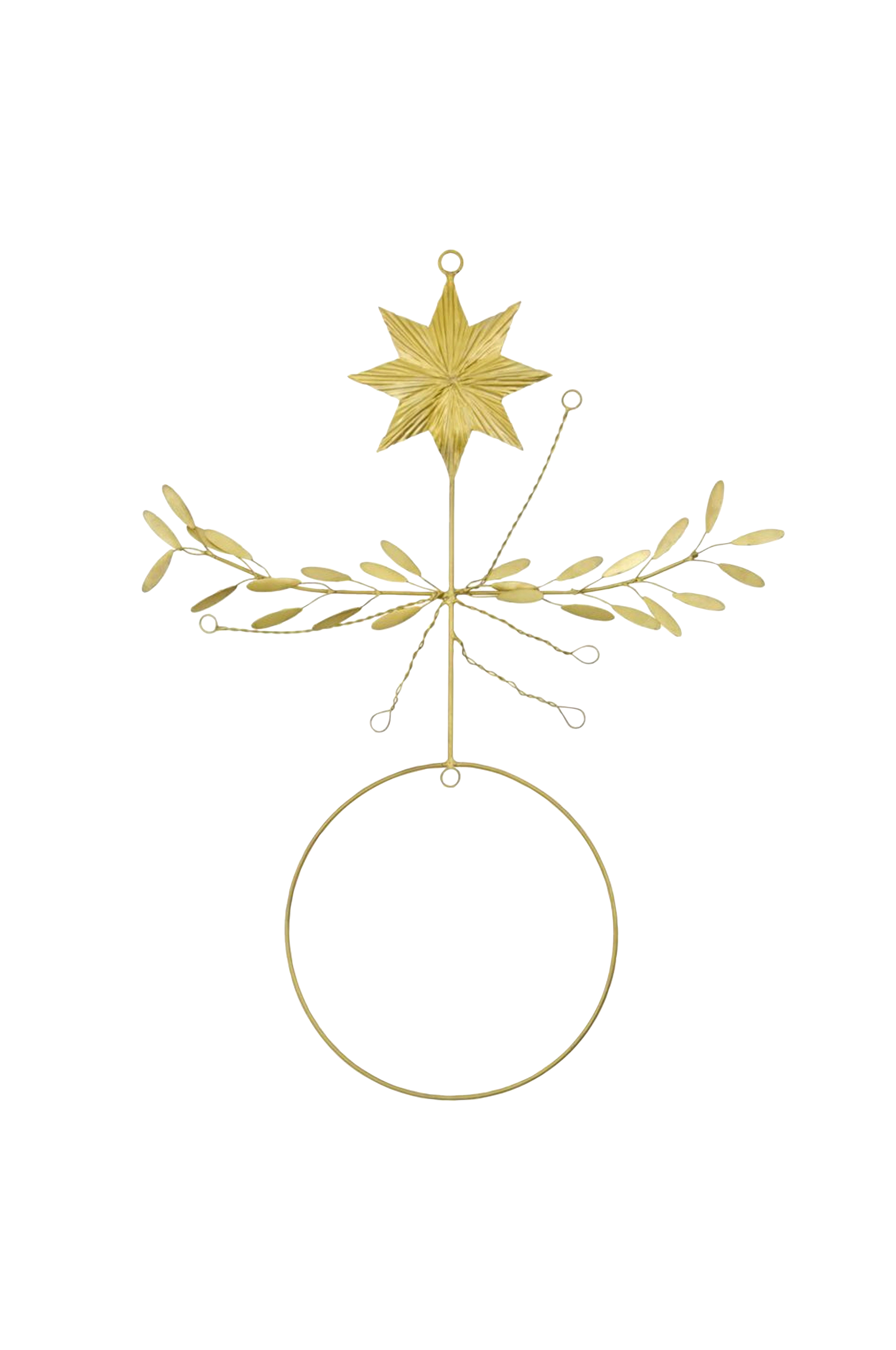 Vis dine kreative evner med en meget lille indsats. Denne håndlavede uro fra House Doctor er det perfekte udgangspunkt for en personlig og elegant juledekoration. Designet har en gylden messingfinish, en stjerne på toppen og blade, som du forsigtigt kan justere. Pynt ringen og de små løkker med din yndlingspynt, tilføj et smukt bånd, og hæng uroen i et vindue eller i din stue for at skabe en festlig stemning. Rengøres med en tør klud.