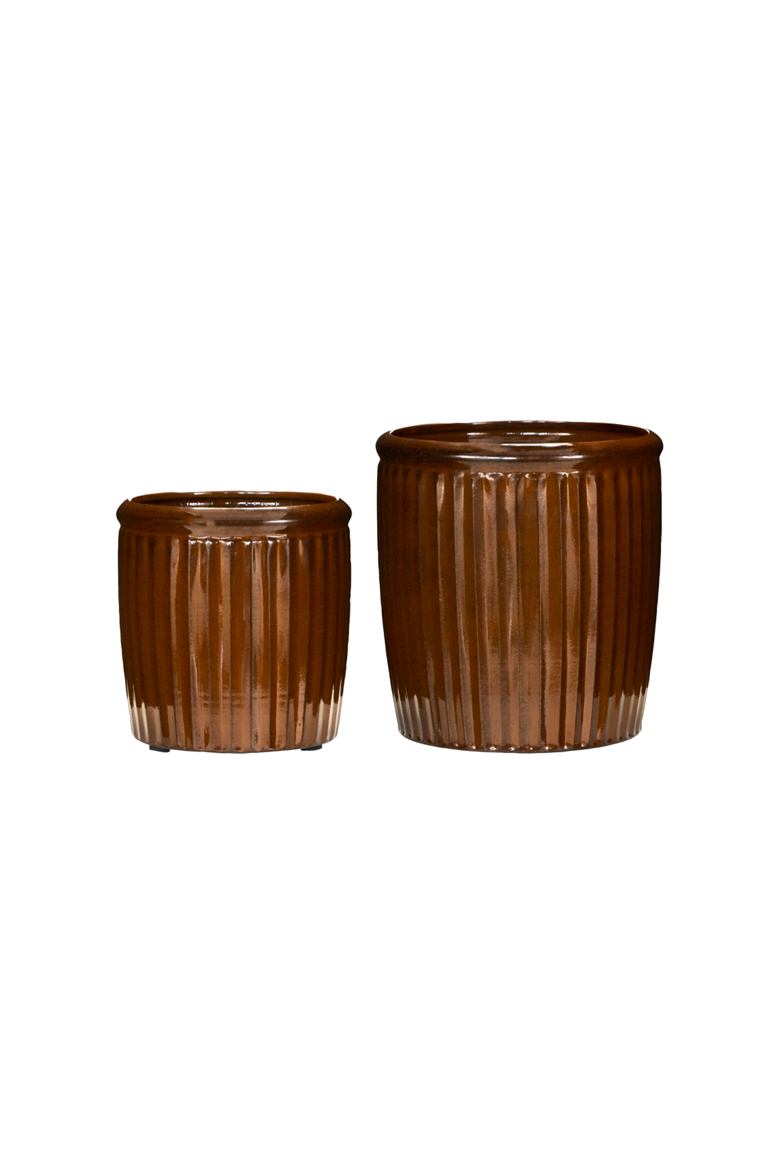 Tilføj dybde og elegance til dit uderum med dette sæt af to blomsterpotter i en blank finish. Deres riflede design supplerer smukt forskellige beplantninger og giver en moderne og tidløs æstetik. Hver potte er lavet af genbrugsstål og har små variationer i tekstur, hvilket giver en unik karakter. Det praktiske drænhul og proppen sikrer, at dine planter får optimal pleje, hvilket gør disse potter ideelle til terrasser og altaner. Ribbet design for moderne stil. Sæt med to størrelser. Gør din udendørs indretning perfekt med disse stilfulde blomsterpotter.