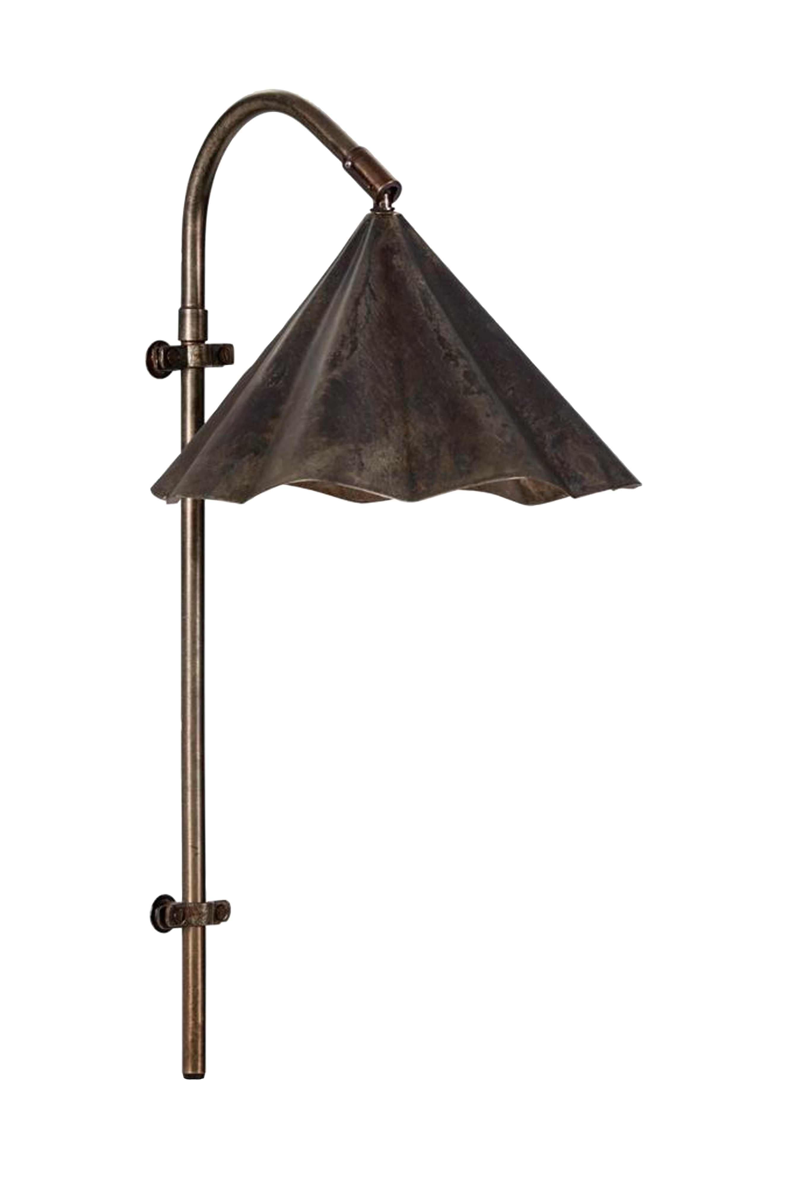 Denne væglampe fra House Doctor skaber en afslappet atmosfære og tilføjer et feminint touch til boligindretningen. Overfladen har fået en industriel finish, som blødgøres af lampeskærmens bølgende form, hvilket er et vidunderligt eksempel på en bevidst defekt. Hæng den på væggen i stuen ved sofaen eller i hallen for at skabe atmosfære og et iøjnefaldende interiørelement.