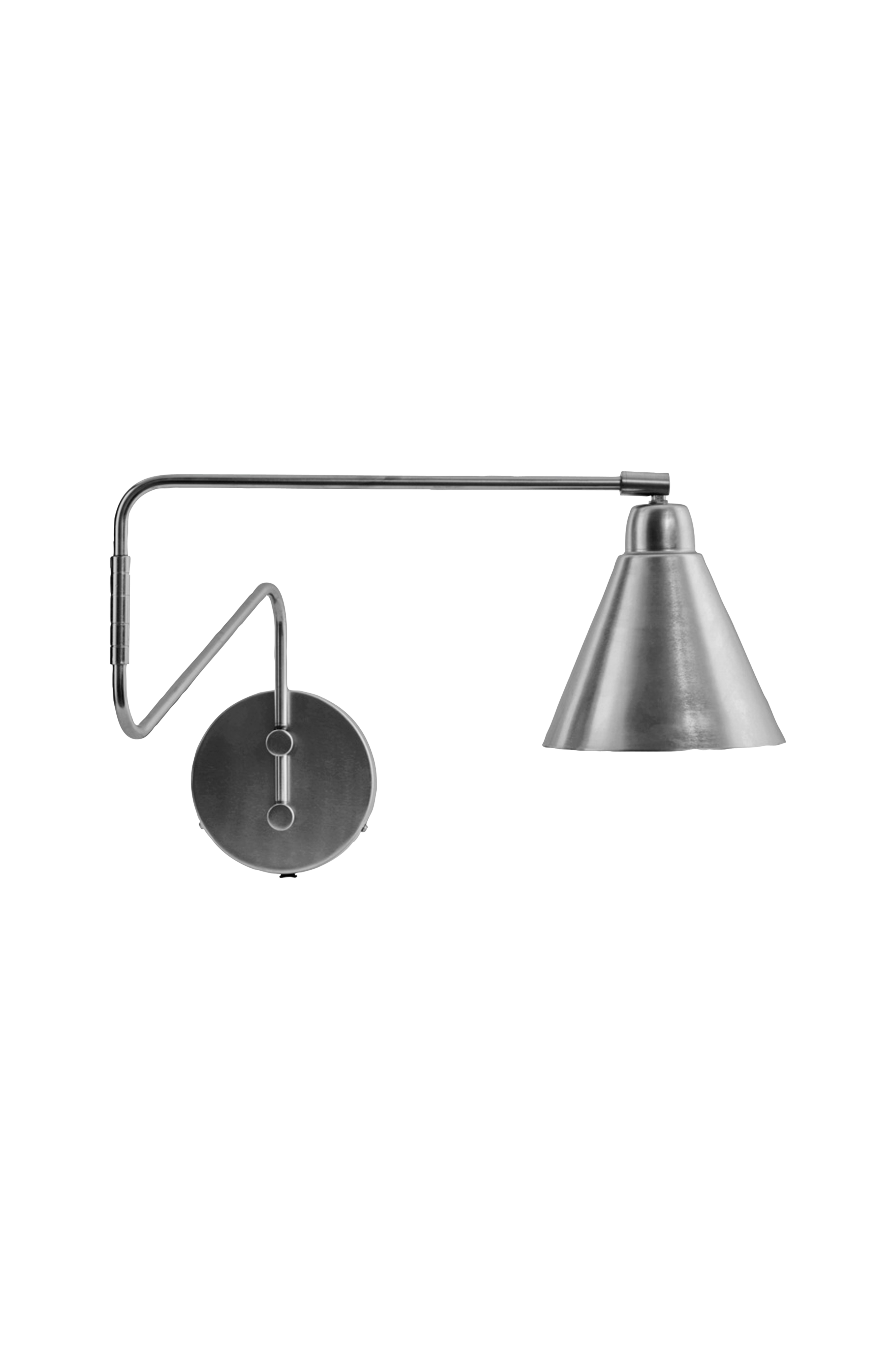 Giv dine vægge et modigt, moderne twist med denne børstede sølvlampe. Den håndlavede jernramme og den karakteristiske koniske skærm giver en industriel elegance, der let løfter din indretning. Den matte finish passer perfekt til både moderne og eklektiske stilarter, mens det hvide indre maksimerer spredningen af varmt, fokuseret lys. Juster den leddelte arm til den helt rigtige vinkel til at læse i sengen, skabe et spotlight over dit arbejdsområde eller lyse op i din stue. Den tekstilbeklædte ledning med indbygget afbryder er både praktisk og behagelig at røre ved, så du kan oplyse din hverdag på en nem og stilfuld måde.