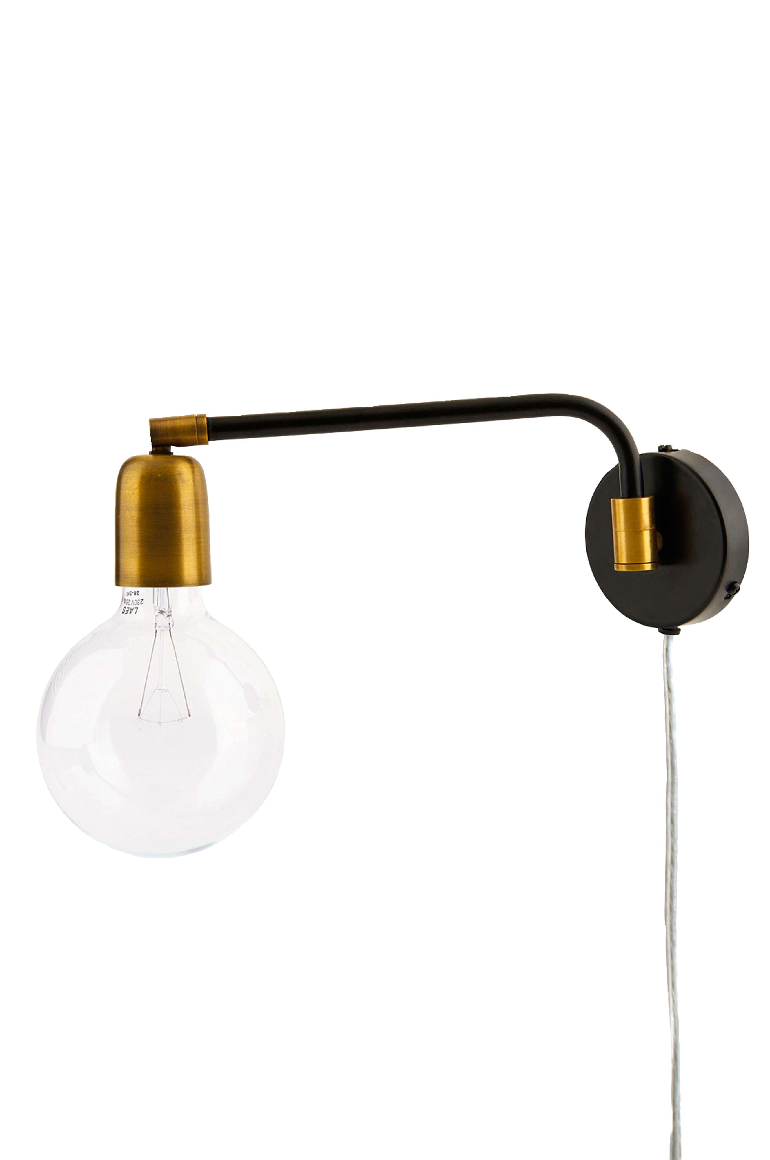 Molecular fra House Doctor er en fantastisk væglampe med et interessant og særdeles dekorativt udseende. Lampen består af et sort jernrør med smukke messingdetaljer og en messingbelagt fod. Kombinationen af det sorte jern og den varme messingoverflade giver karakter og personlighed til designet. Den er perfekt egnet til at bruge som en anderledes og dekorativ lampe i din stue, soveværelse eller i entreen. Mål: 18x30 cm. E27, maks. 25 Watt, 2,5 m ledning