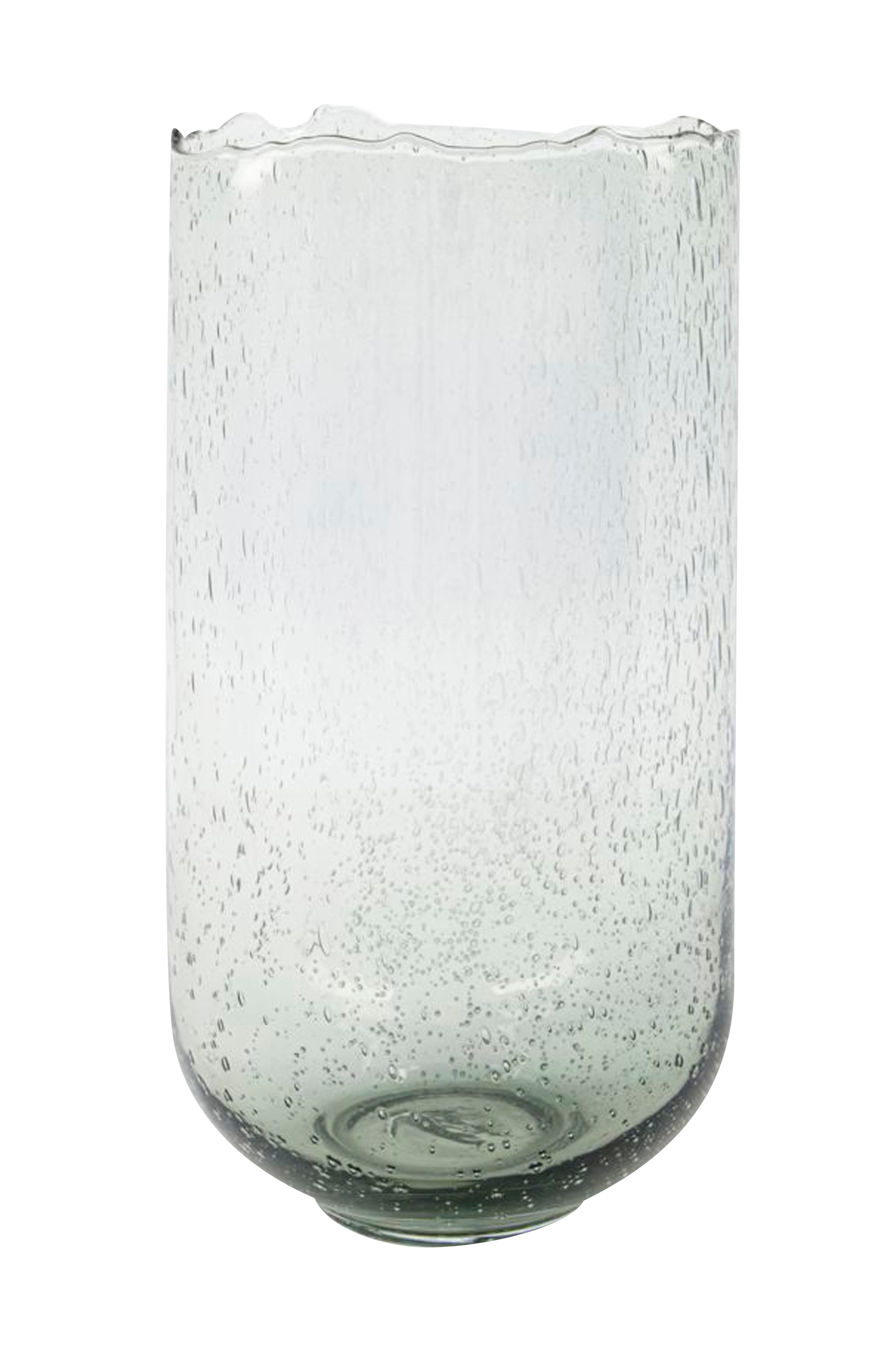 En cylindrisk form og uventede detaljer mødes i denne glasvase fra House Doctor. Luftbobler i det grå glas giver karakter og finurlighed til designet, især når sollyset rammer overfladen. Kanten er bevidst ujævn for at give vasen Alko en god portion charme, da disse små fejl er det, der gør designet så interessant. Stil vasen i vindueskarmen med nyplukkede blomster eller brug den uden blomster som et dekorativt element, der løfter din stue. Den fungerer også godt i en let og luftig dekoration med andre glasvaser.