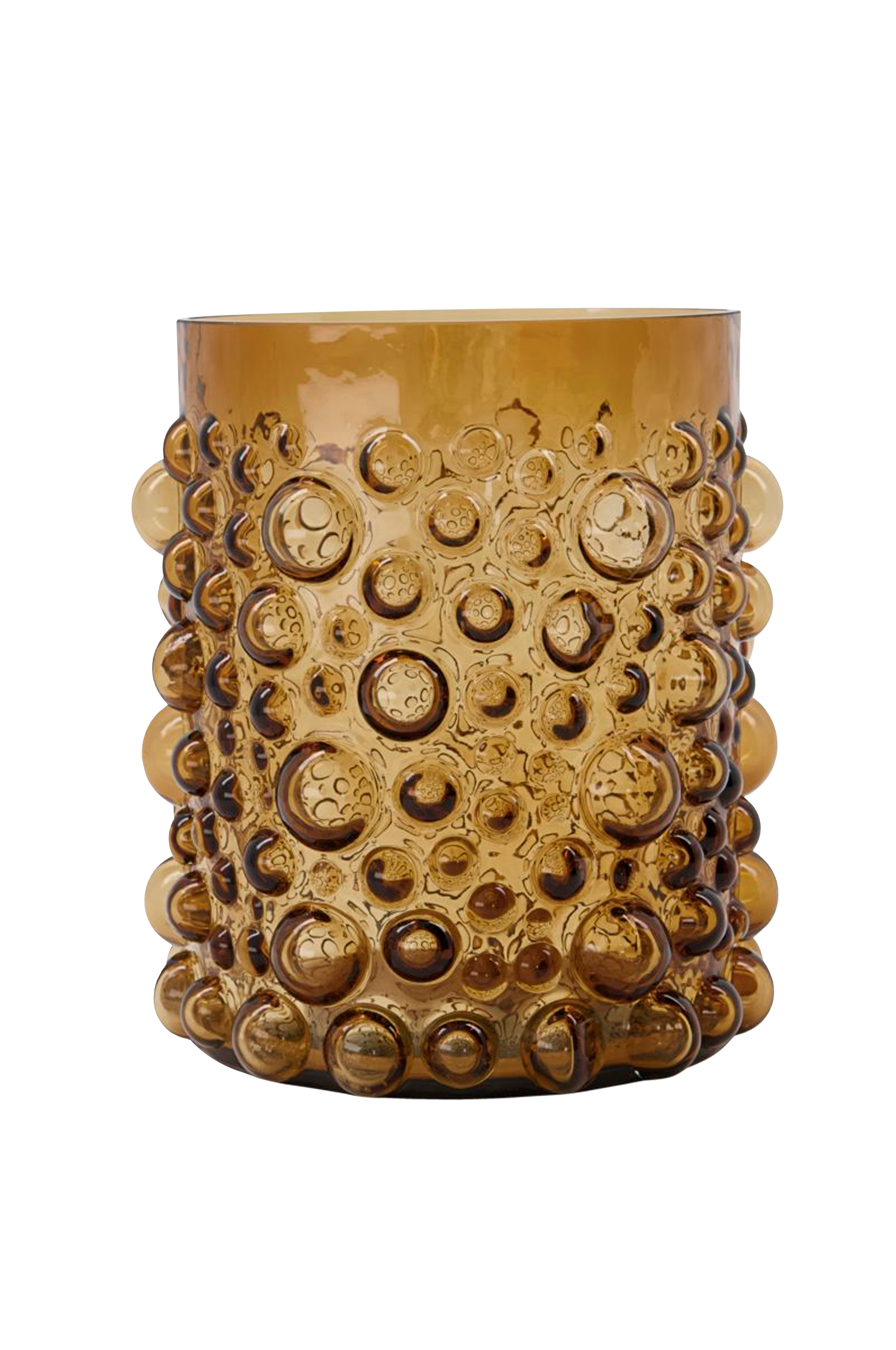 Vase Foam fra House Doctor giver din indretningsstil en flot og stilfuld uformalitet. Dens varme farve og bobleformede overflade går sammen for at tilføje subtile detaljer og et lidt anderledes touch til din boligindretning. Tilføj en buket friskplukkede blomster og stil cylindervasen i vindueskarmen eller på sofabordet sammen med flotte lysestager i en gylden nuance for et elegant og afbalanceret look. Ønsker du at markere den bobleformede overflade, kan du kombinere vasen fra House Doctor med fyrfadsstagerne i samme design for at tilføje lidt variation i højden. Højde 19 cm og diameter 15 cm.