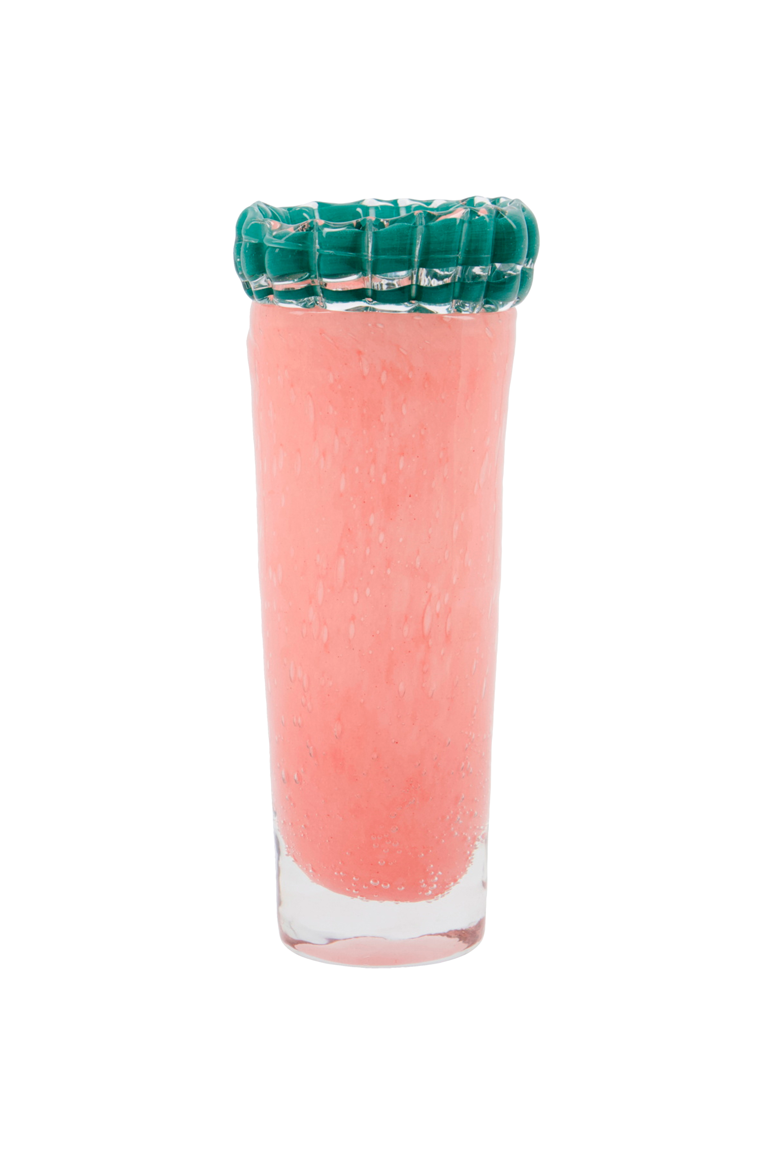 Denne glasvase er håndlavet med præcision og tilfører varme og charme til dit hjem. Den boblende glasstruktur og den karakteristiske grønne kant giver en unik visuel appel, der er perfekt til at lyse op i din bolig. Brug den som vase eller fyrfadsstage for at tilføje et strejf af personlighed til din indretning denne sæson. Håndlavet bobleglasdesign. Bring et strejf af kunstnerisk flair til din stue eller spiseplads med denne fantastiske vase.