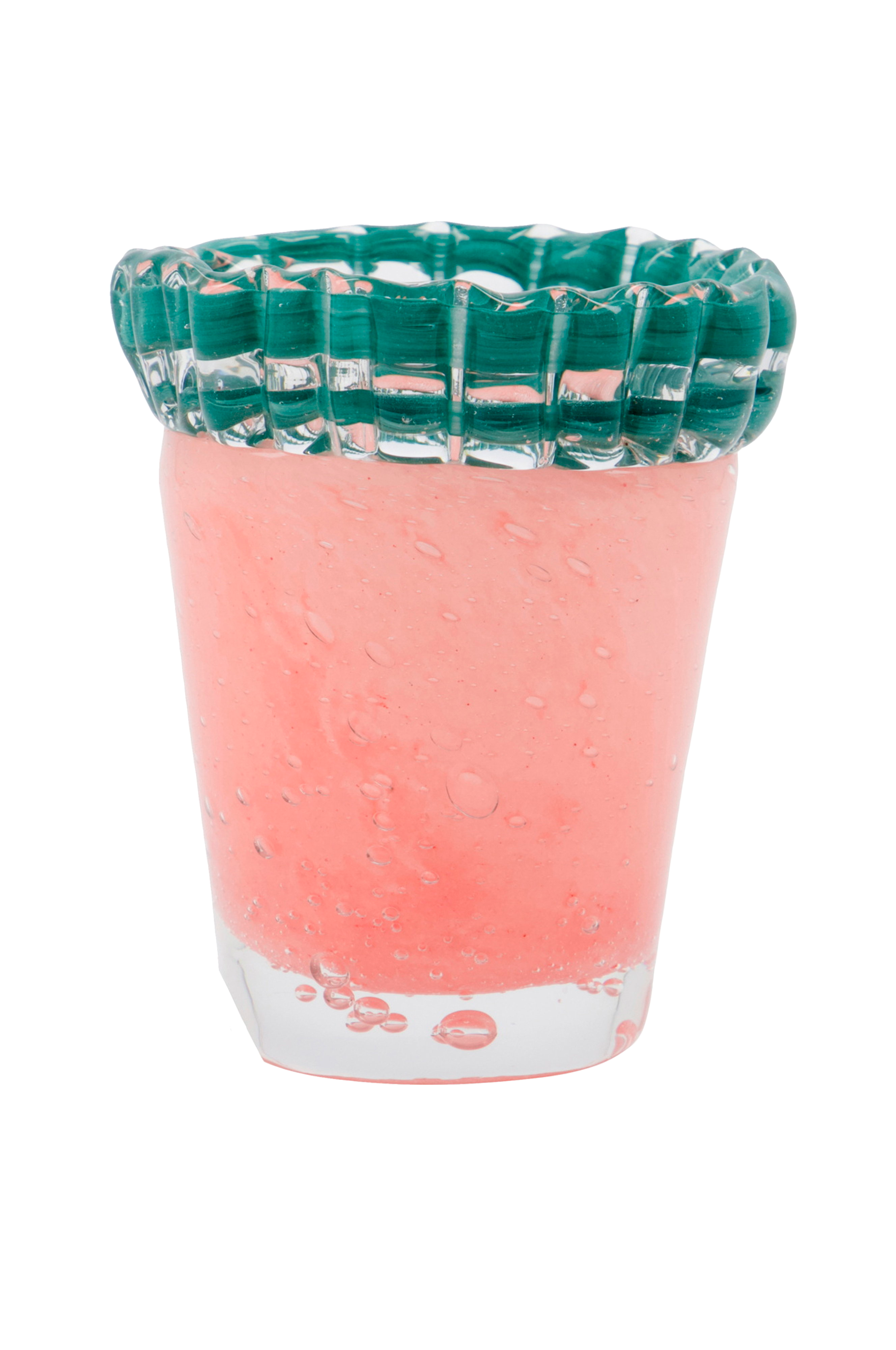 Giv dit hjem et pift af farve og charme med denne udsøgte håndlavede vase. Den er fremstillet af tonet bobleglas og har en buet kant, der giver den et unikt præg og gør den til et smukt element i enhver indretning. Uanset om den pynter på dit spisebord eller på en hylde, vil dens legende design fange og fortrylle. Da den også kan bruges som fyrfadsstage, er den en alsidig tilføjelse til din indretning, der giver varme og stil. Håndlavet med unik charme. Giv dit hjem karakter med denne charmerende vase.