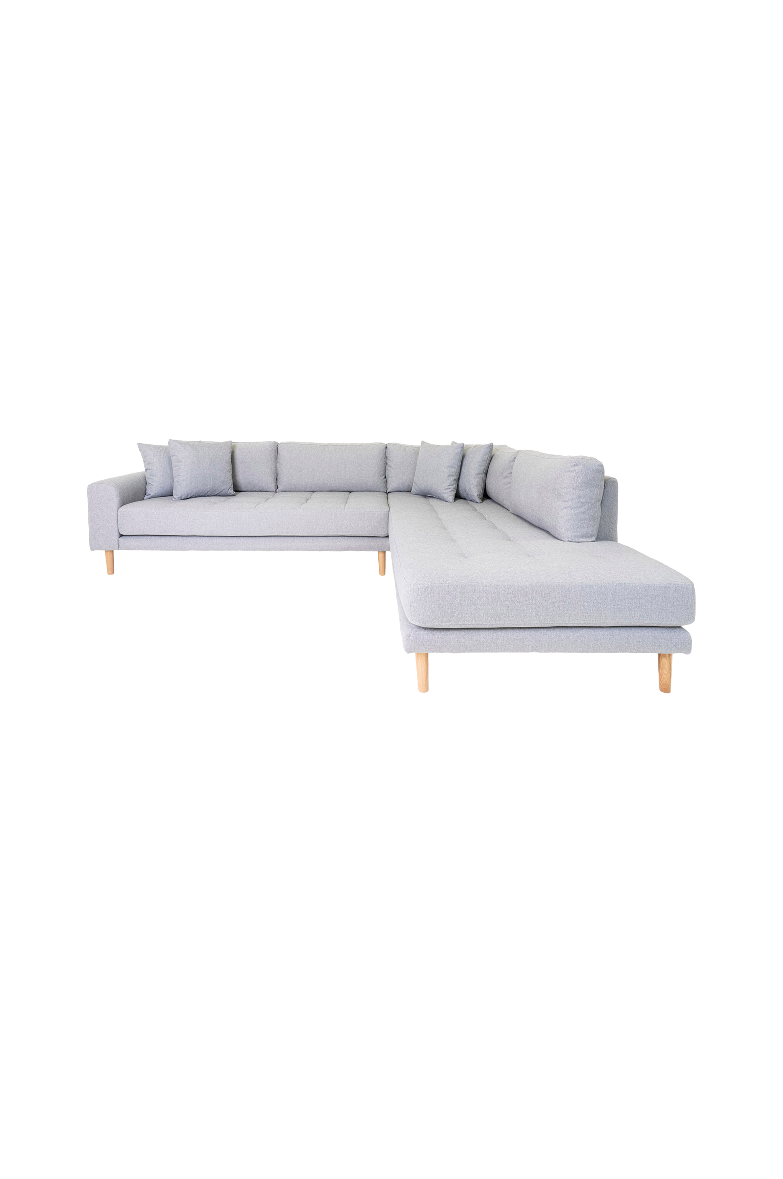 Hjørnesofa med open-end, usamlet sofa i 100% polyester med ben af træ. 92-220x257x76. 76 kg