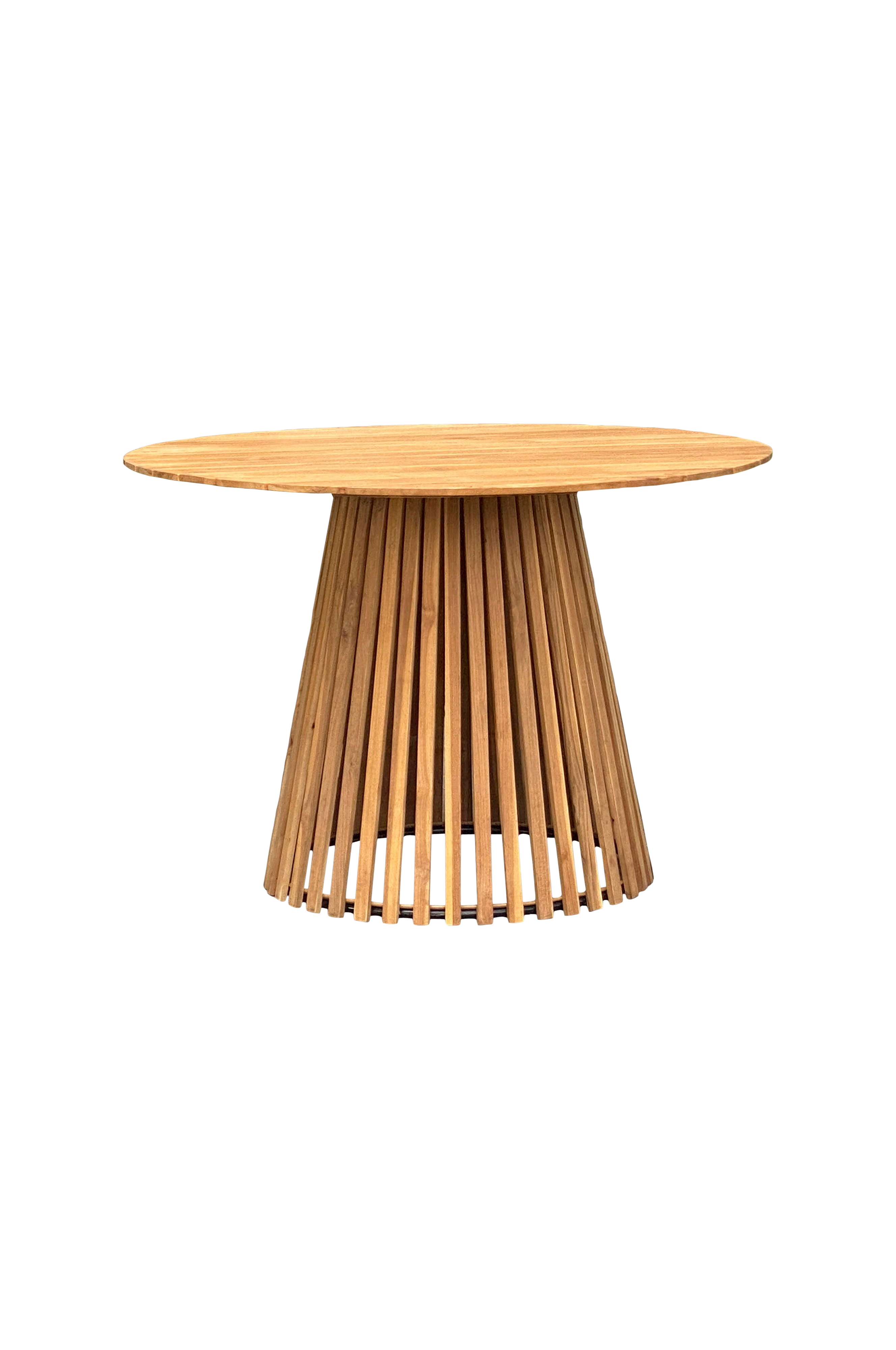 Spisebord, bordplade i teak, understel i teak, natur ø130x74 cm